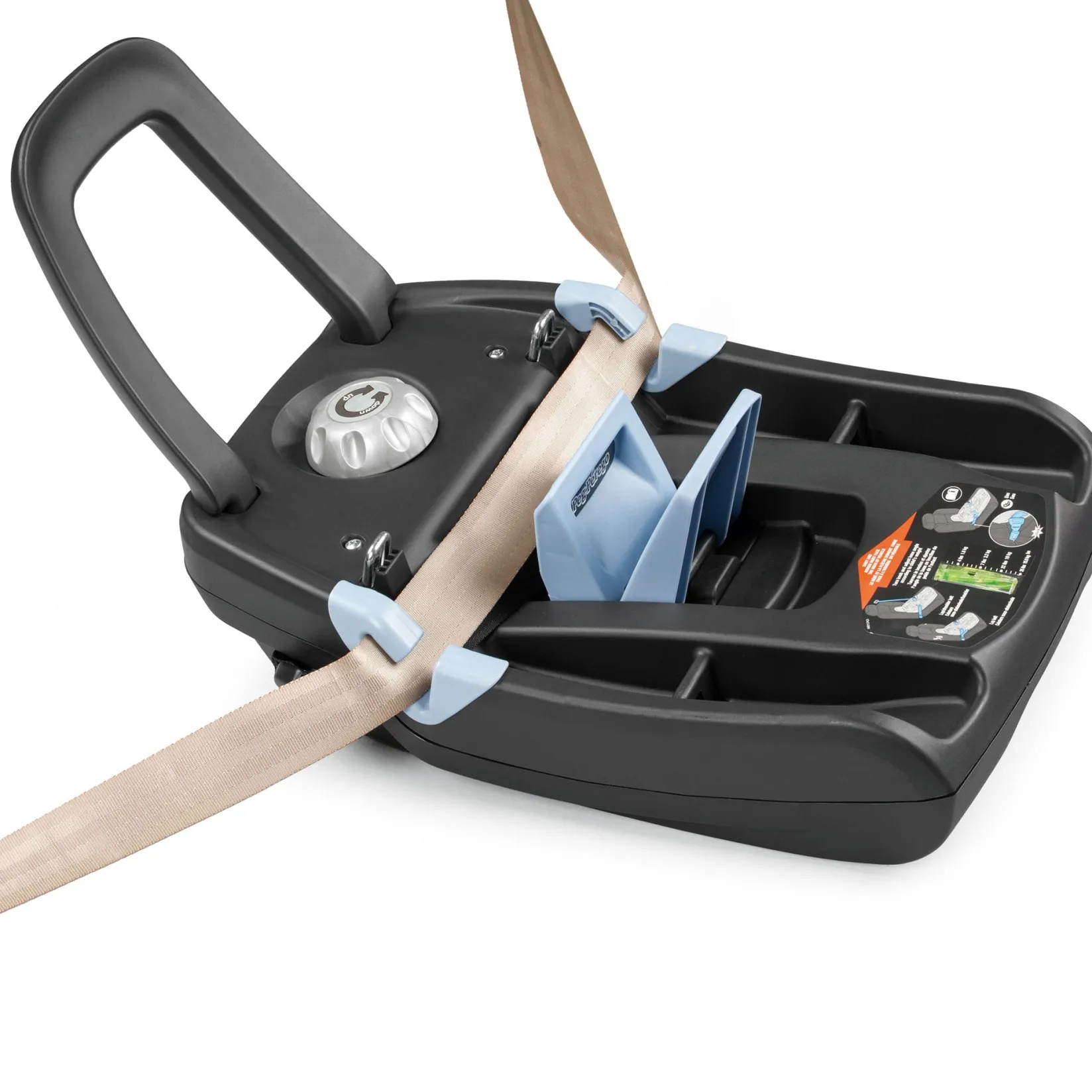 -Base is equipped with an innovative system which easily and securely locks the base in place for added stability with either LATCH strap or vehicle’s seat belt
