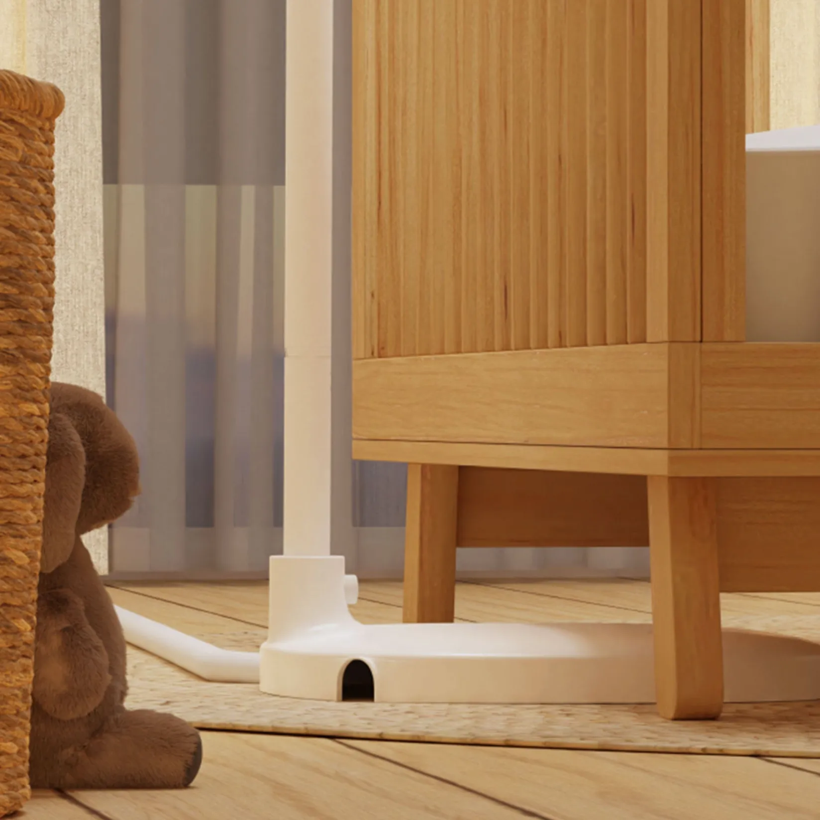 New, improved stability and durable, compact design for any sleep space! Our updated Floor Stand gives you the freedom to use it in nearly any baby sleep space, especially small ones (we’re talking bassinet now, crib later). Its solid base allows it to easily fit under smaller cribs and offers added stability with a minimal footprint.