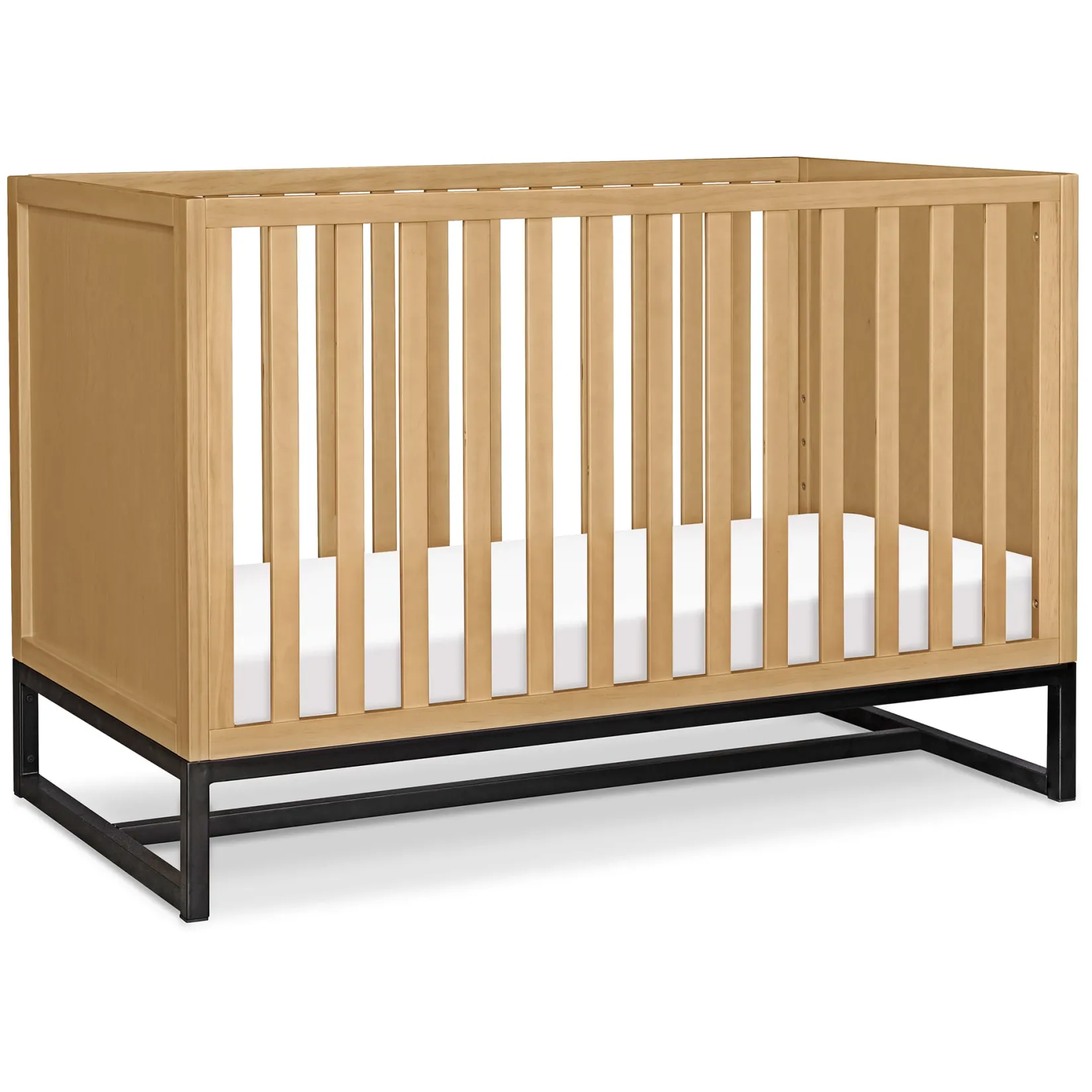 The clean lines and chic metal base of the Ryder 3-in-1 Crib will bring a contemporary feel to any nursery. Built to seamlessly transition from newborn to toddler, the crib has four different mattress heights and easily converts to a toddler bed and daybed. Coordinates with the Ryder Convertible Changing Table and Cubby Bookcase for a stylish and modern nursery.