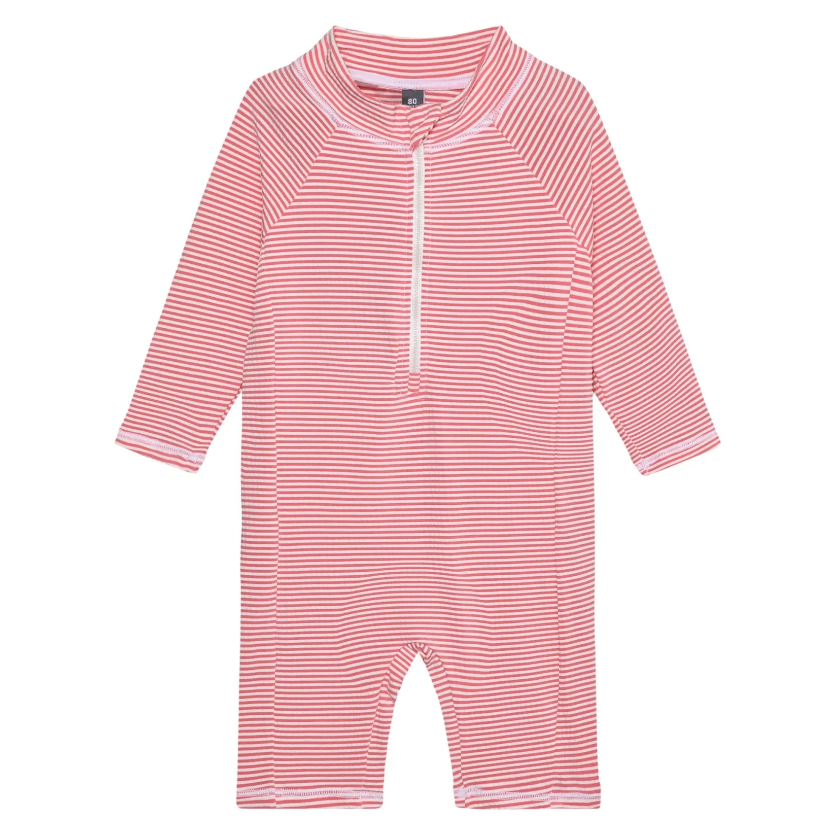 OEKO-TEX® STANDARD 100 Cert. No. 2276-364 DTI, Tested to UV STANDARD 801 UPF 60+ Swimsuit with long sleeves and a striped pattern from Color Kids. The swimsuit has a front zipper and is both flexible and comfortable. Certified acc. to OEKO-TEX® STANDARD 100 Cert. No. 2276-364 DTI Tested and certified acc. to UPF 60+. To determine the UPF rating, the fabric is tested in both new and used conditions, following the UV STANDARD 801 method. The entire product is then CE-certified under PPE regulations.