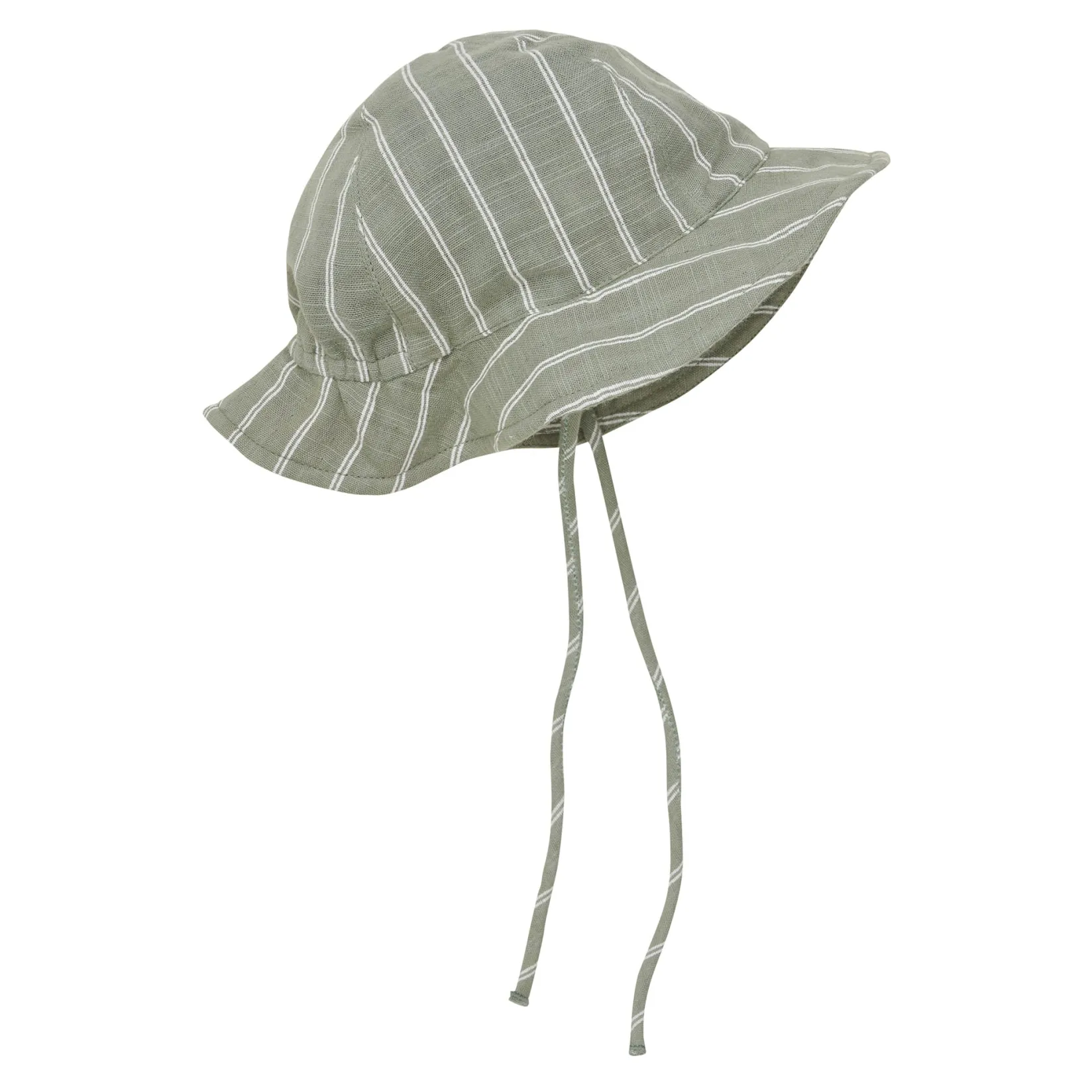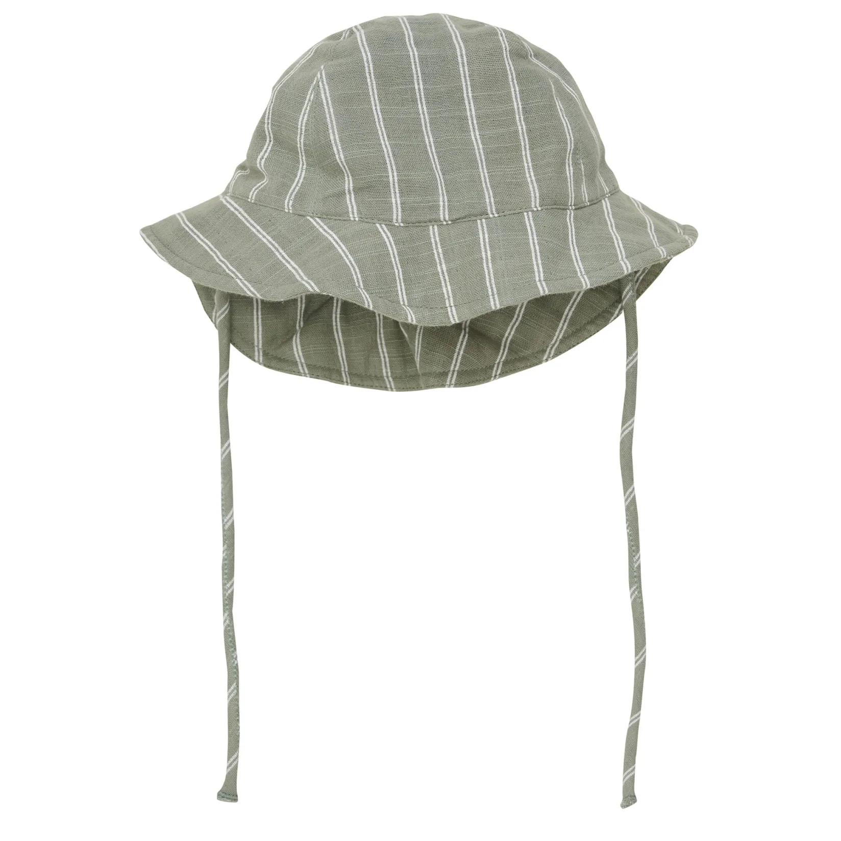 Nice striped summer hat from Minymo. The hat is made of 100% cotton and has nice stripes all over. A little elastic inside, which ensures a comfortable and individual fit. The straps can be tied together so that the hat does not fall off.