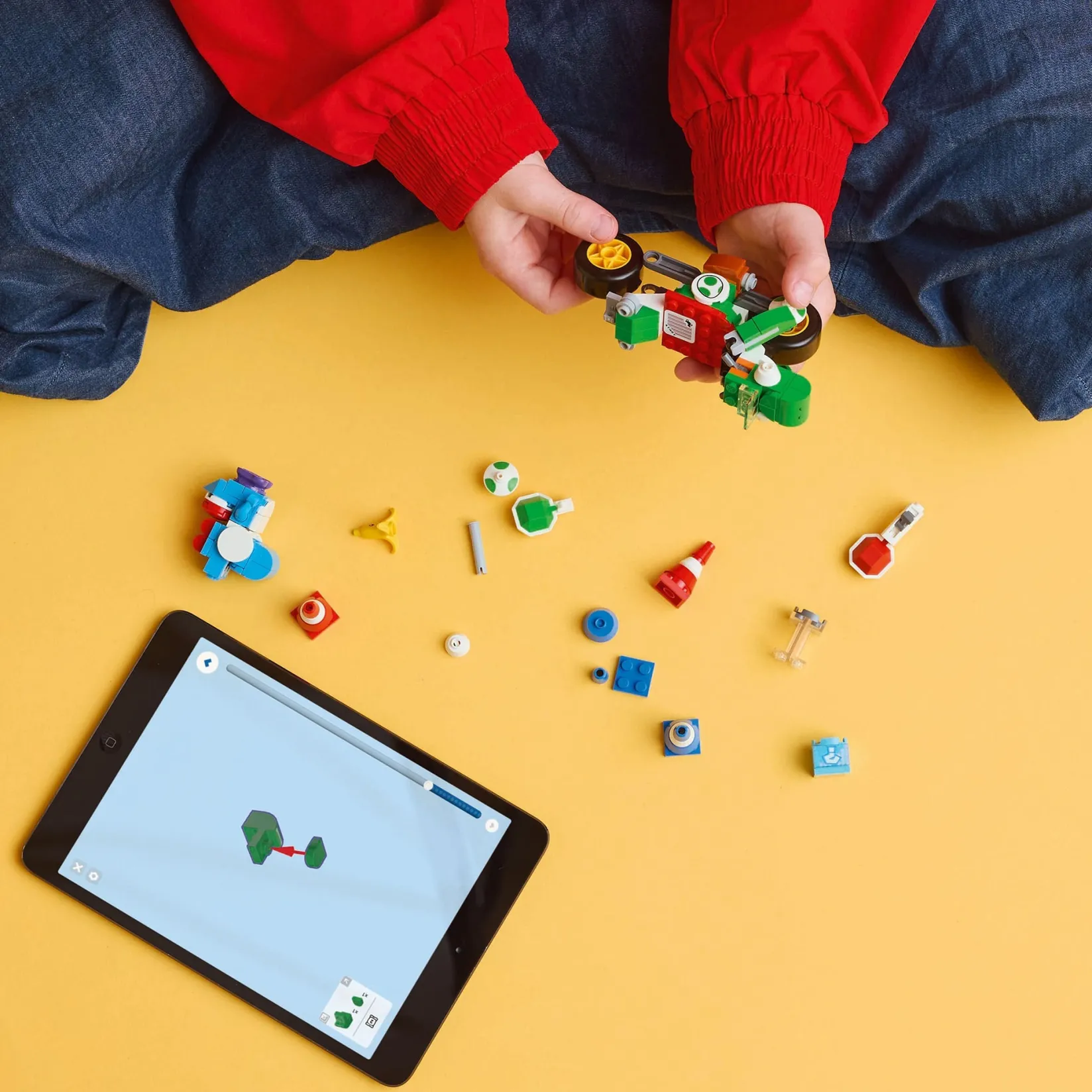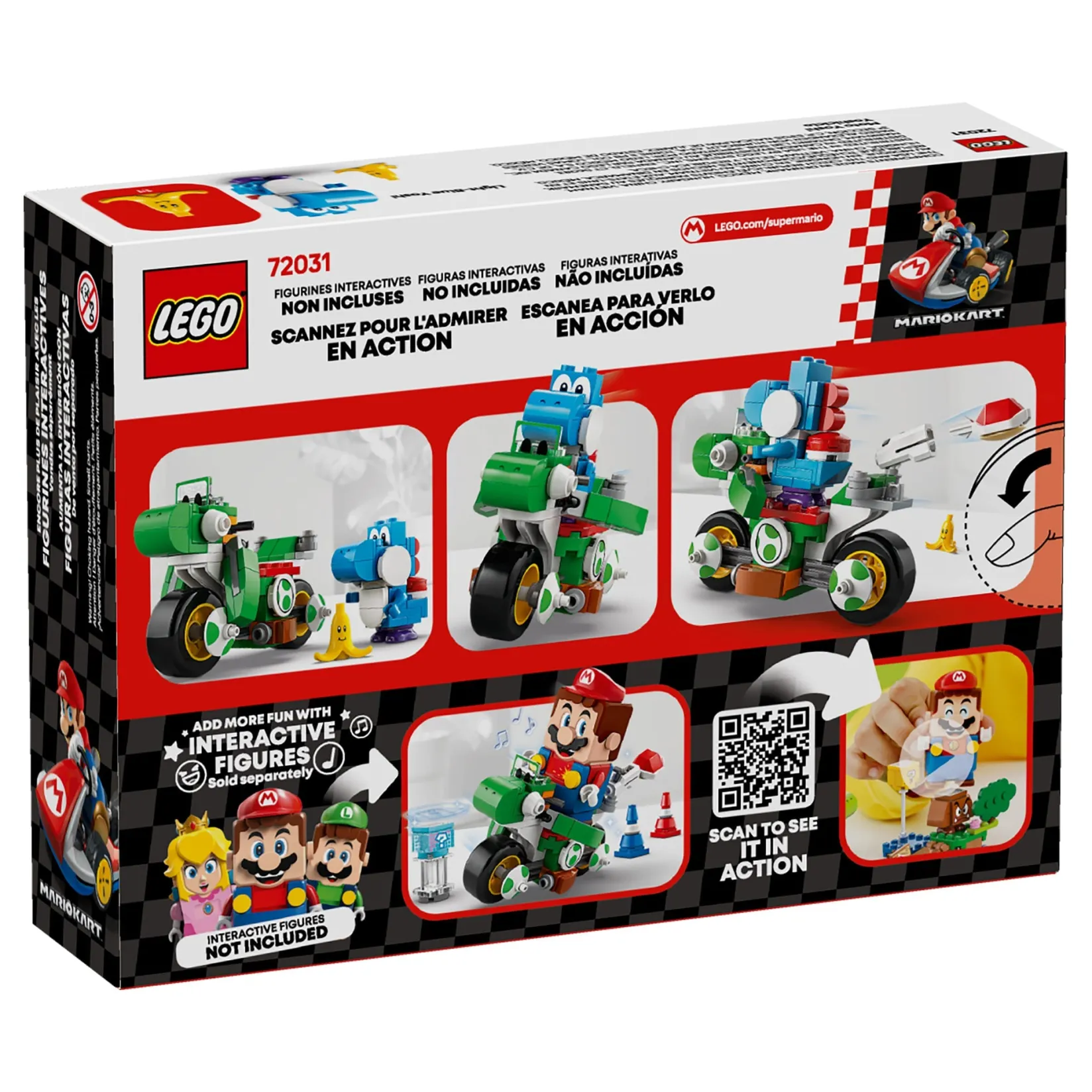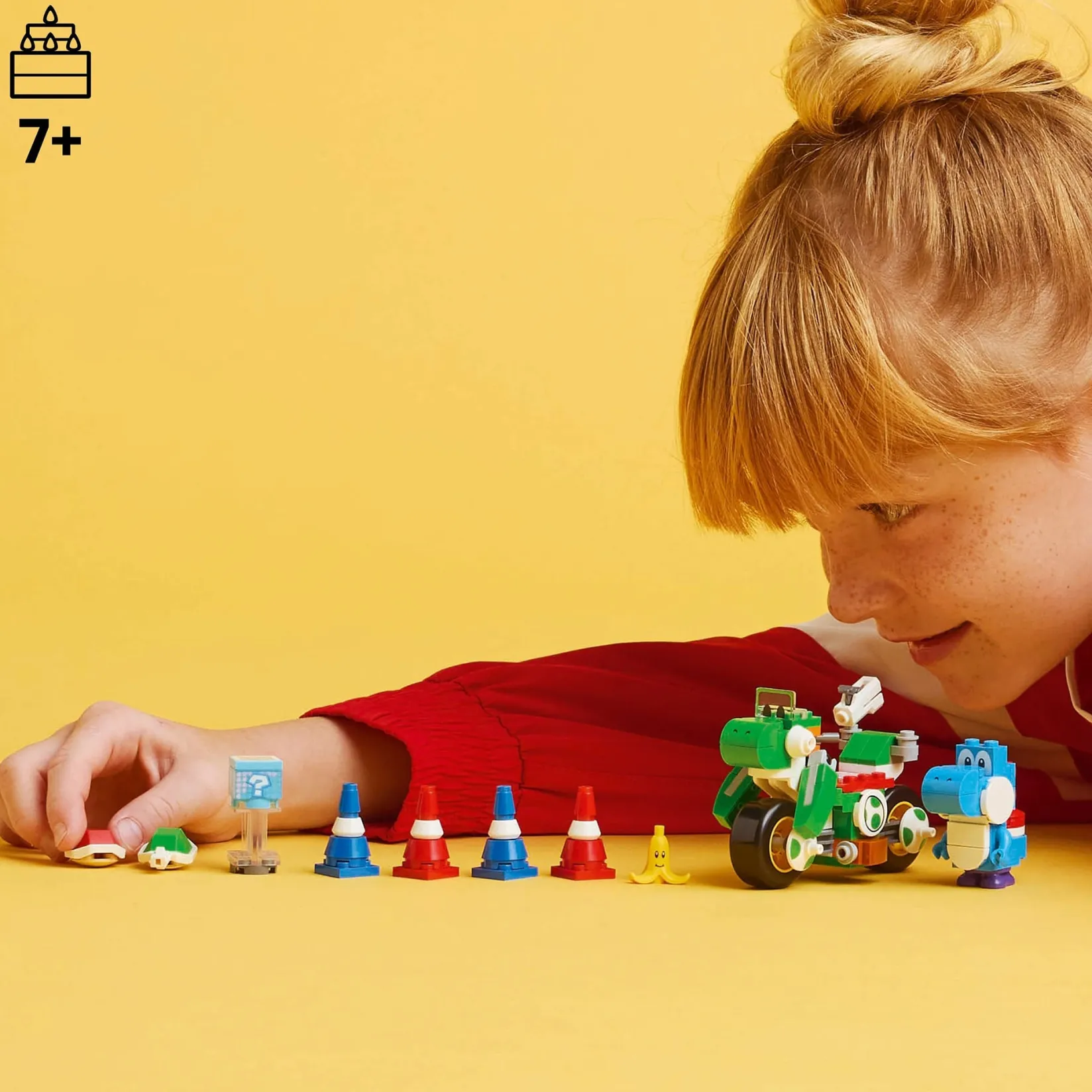 Get ready for thrilling racing action with the collectible LEGO® Super Mario™ Mario Kart™ – Yoshi’s Bike (72031) set for kids. A fun Nintendo® gift idea for boys, girls, and gamers aged 7 and up, the set features a brick-built model of Yoshi’s bike and, for the first time in a LEGO Super Mario set, a light-blue Yoshi figure. Help Light-Blue Yoshi ride the bike between four cones, launch shells, and avoid the banana.
