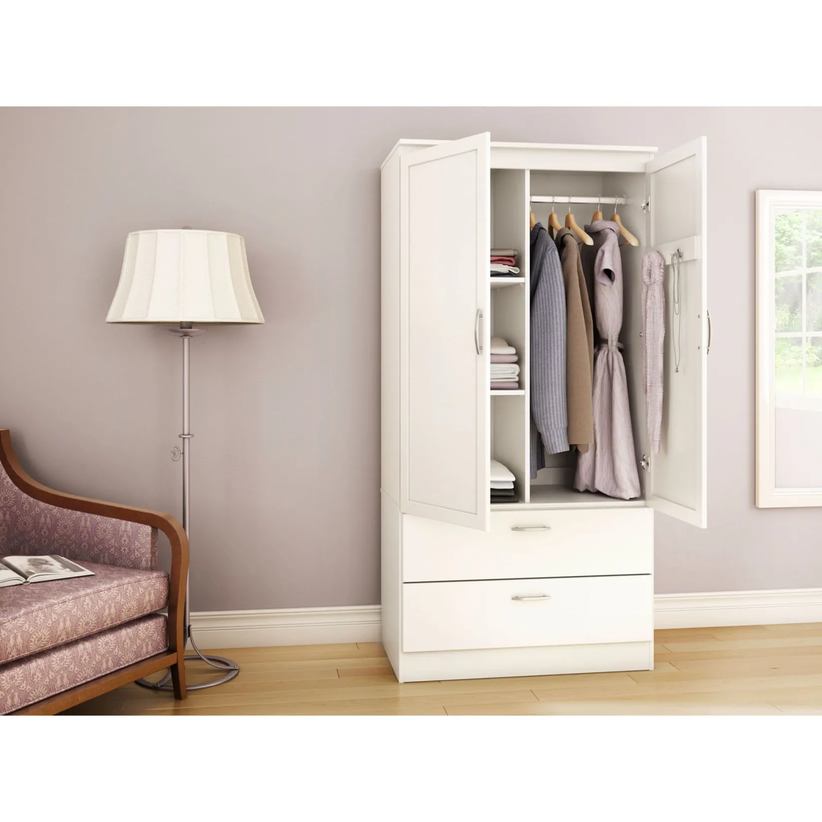 -Right-hand side: Includes a metal rod for hanging longer items of clothing