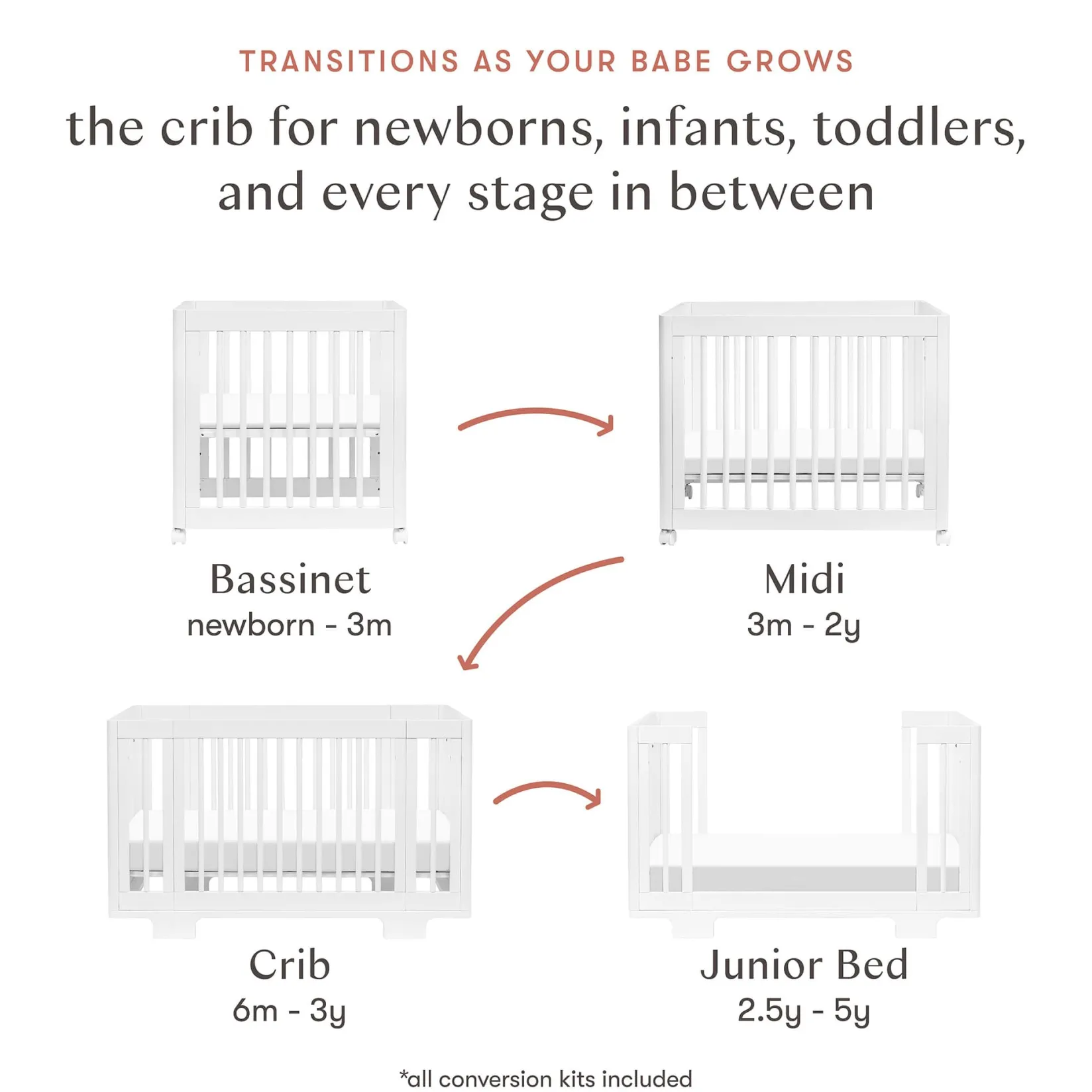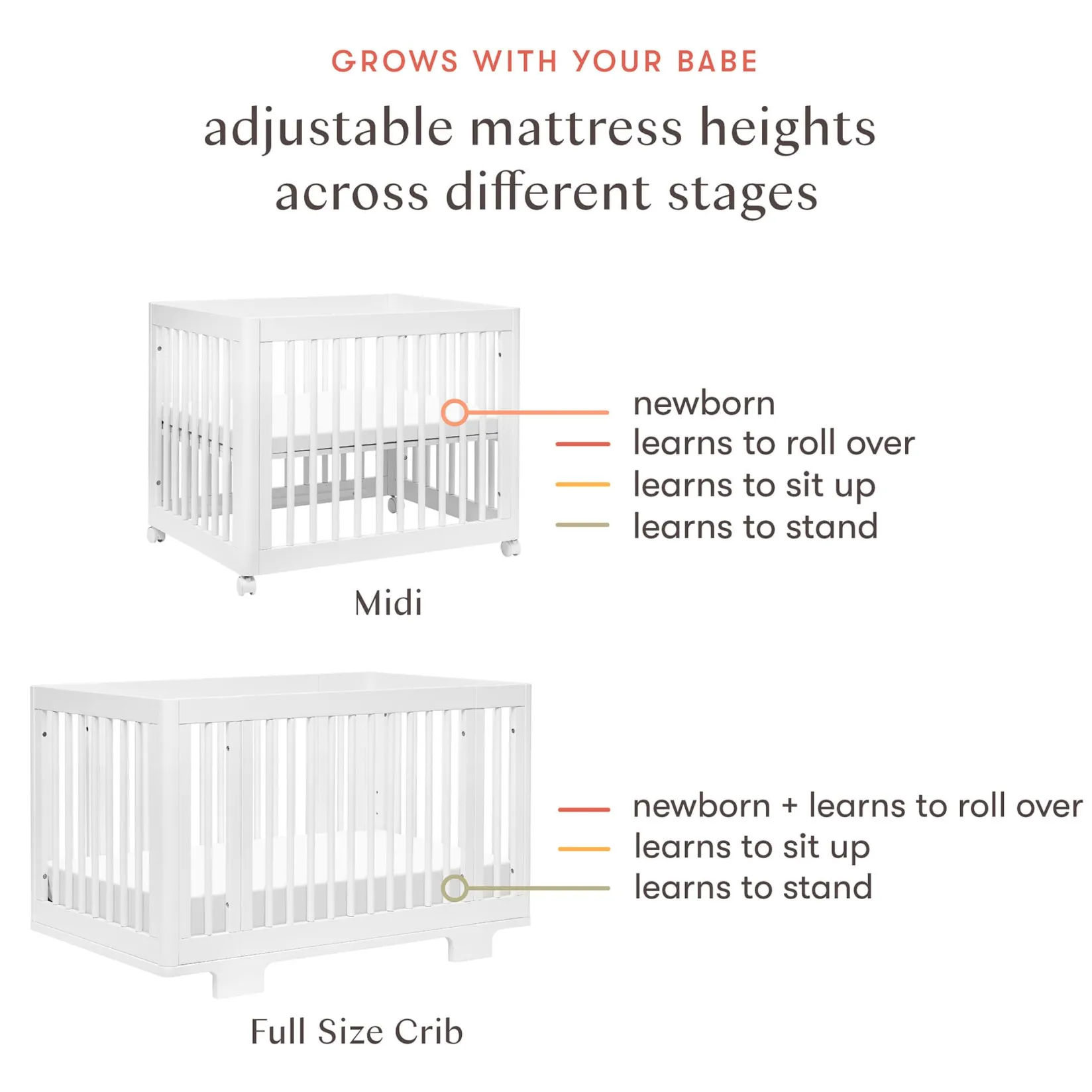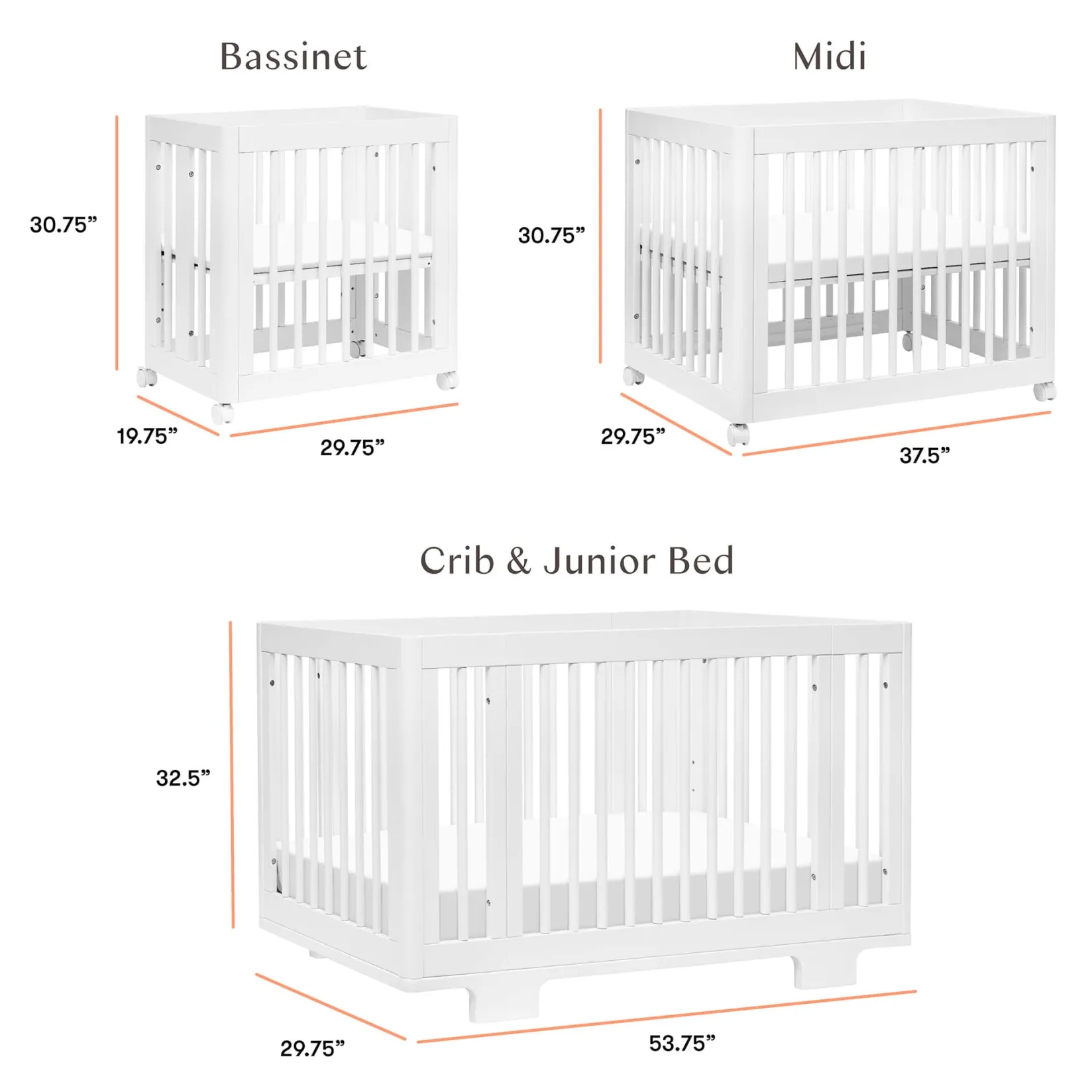 -ALL-STAGES 8-IN-1 CONVERTIBILITY: The patent-pending Yuzu Crib has been engineered to grow at your little one’s pace and adapt to your space. Choose from 8 conversions across 3 unique sizes to fit your family & home: bassinet, midi crib, midi toddler bed, midi daybed, full-size crib, full toddler bed, full daybed, and junior bed.