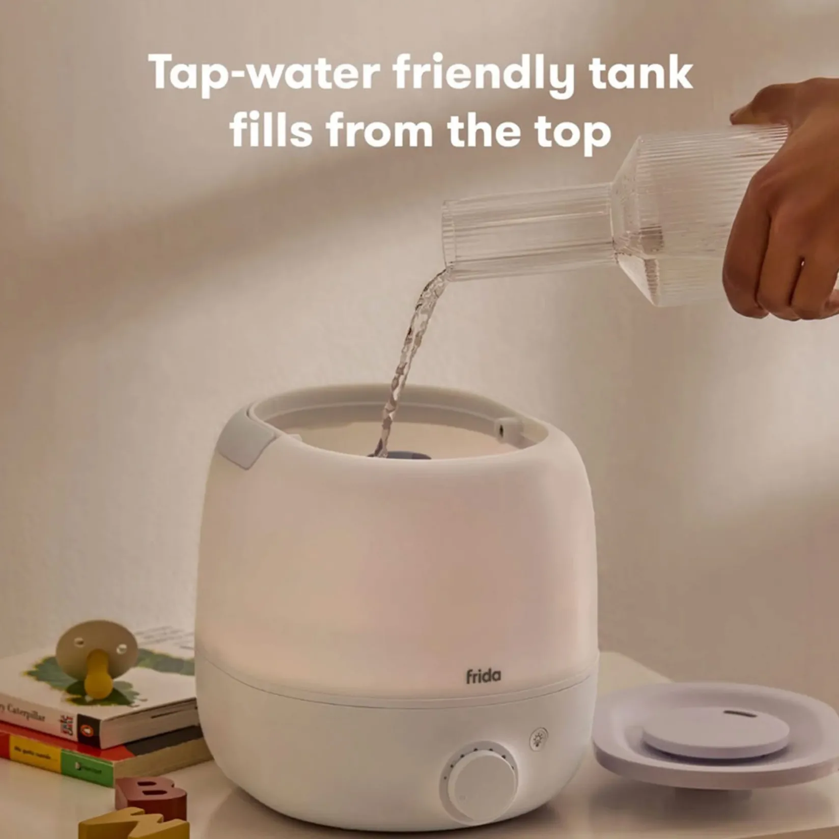 The Frida Baby 3-in-1 Baby Humidifier, Nightlight, and Diffuser is the ultimate solution for creating a serene nursery atmosphere. Specifically designed for babies and toddlers (but great for adults too), this cool mist humidifier and top fill humidifier ensures optimal moisture levels, promoting comfortable breathing and better sleep. With its gentle night light feature, it provides a soothing ambiance perfect for bedtime routines with 60 hours of fill time. The sleek design, makes it easy on the eyes. Plus, it doubles as a versatile diffuser, allowing you to customize the atmosphere with your favorite essential oils. Invest in your baby’s well-being with this multifunctional and stylish addition to any nursery.
