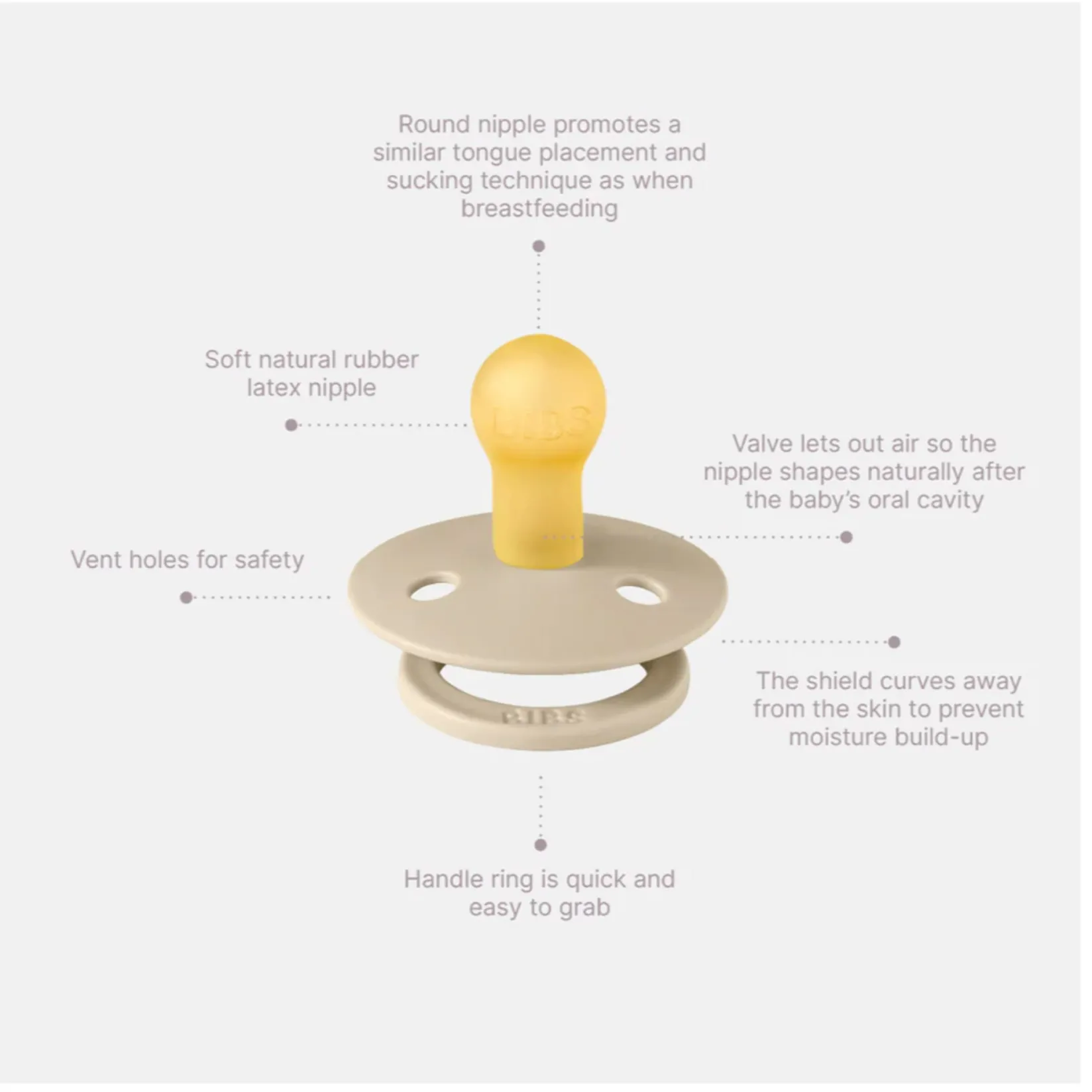 Classic and timeless pacifier made in Denmark for a vintage look.