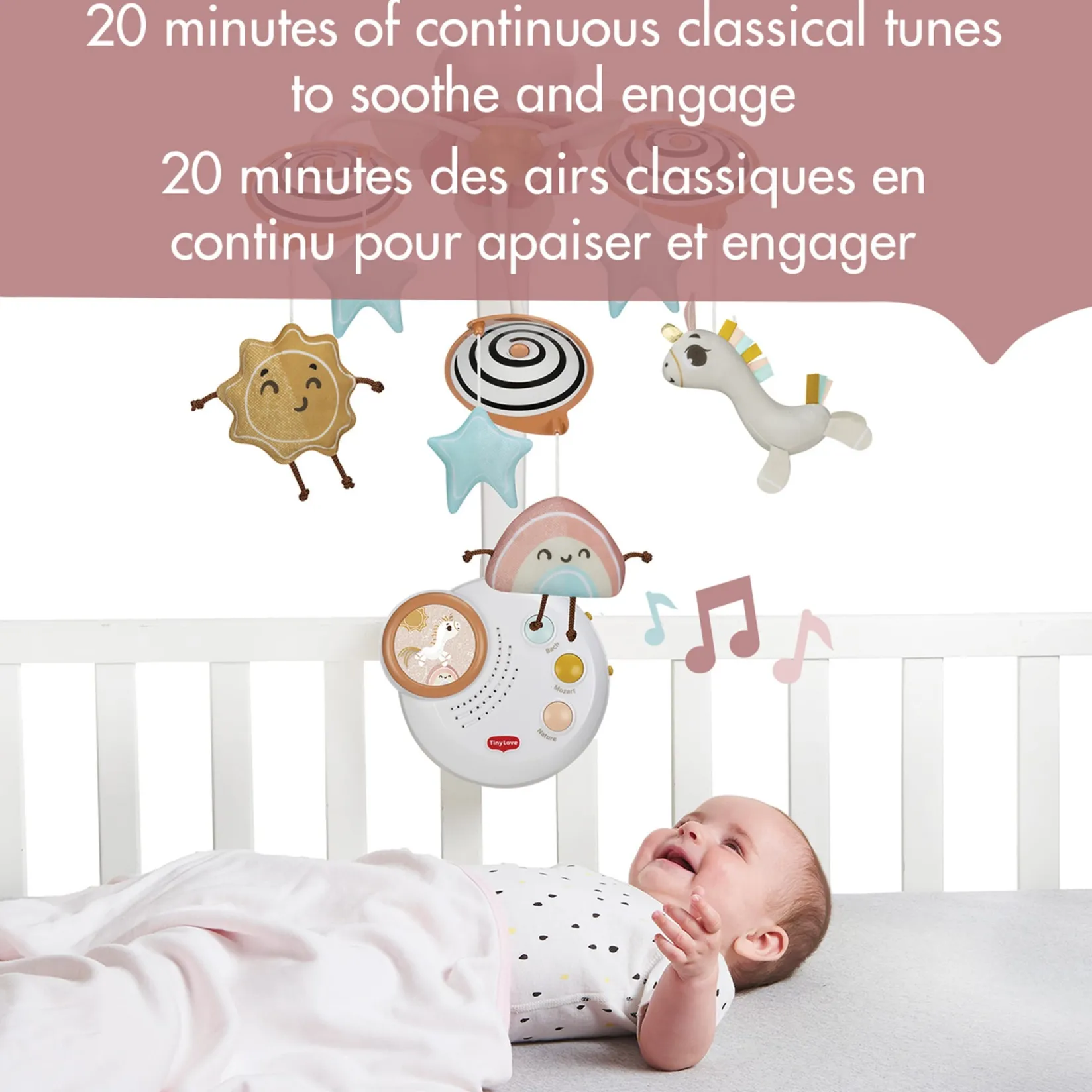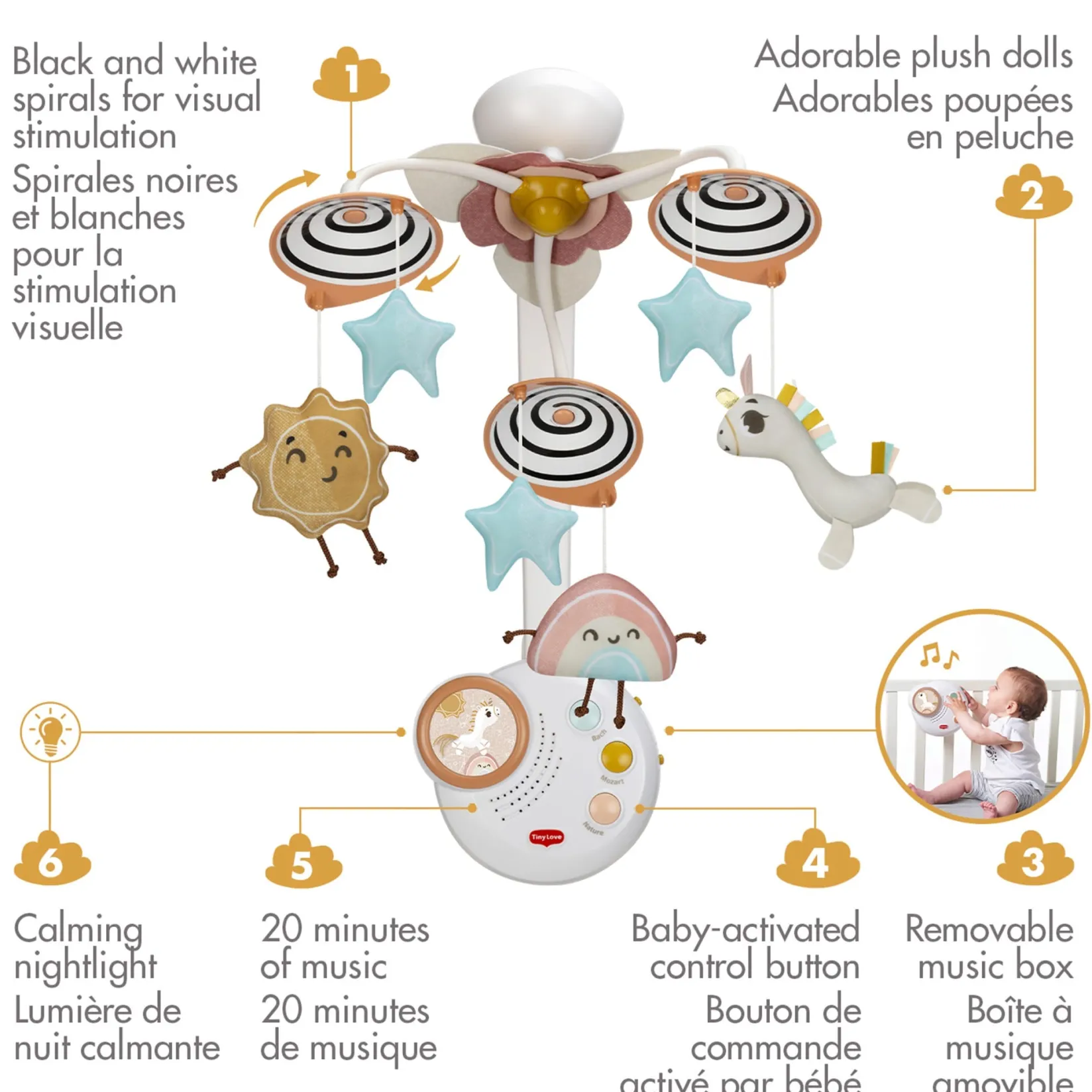 Tiny Love is a company that creates and manufactures products whose main purpose is to support children in their development from birth and to offer smart solutions to the real needs of parents. From its colorful mobiles for the crib to its fun toys for car seats, Tiny Love is a guarantee of safety, quality, and enjoyment for your little ones.