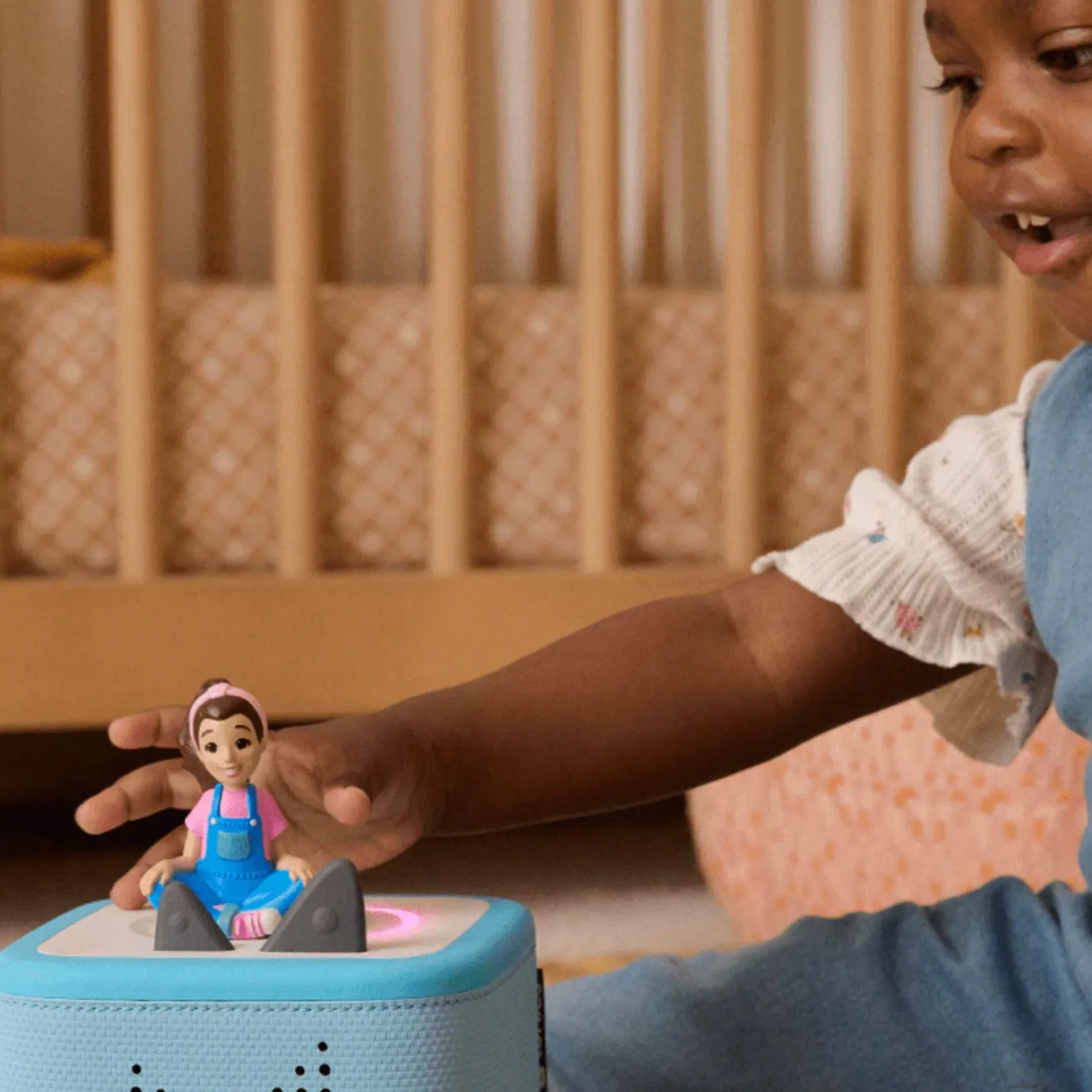 -Hand-painted collectible characters magnetically attach to the Toniebox, making it easy for kids to switch content on their own.
