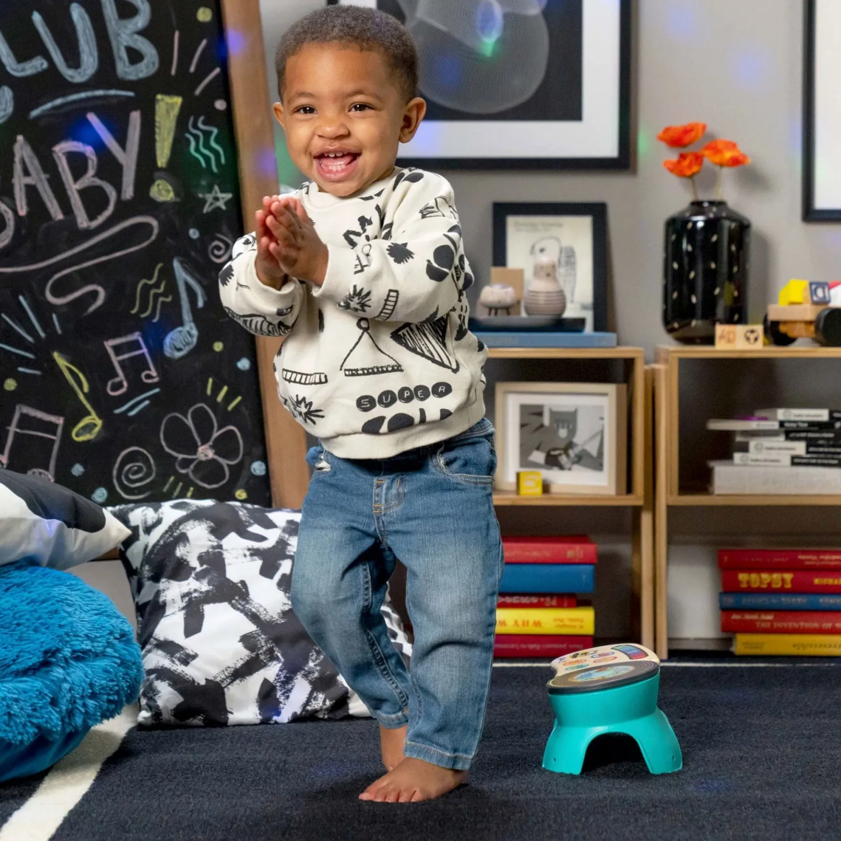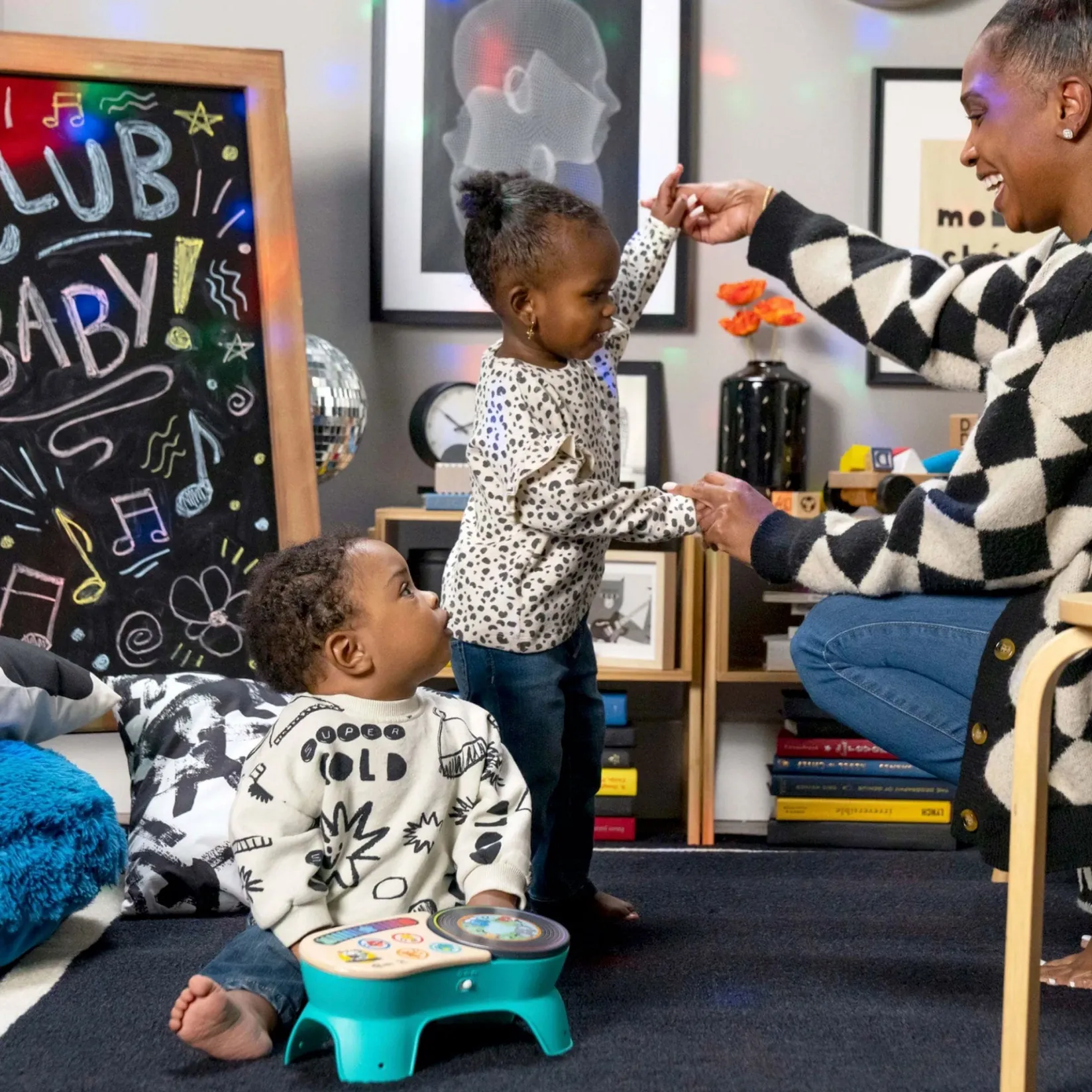 Make music, explore sounds, and learn rhythm with the Baby Einstein + Hape DJ Discovery Magic Touch Turntable. 50 melodies and sounds let baby put their own spin on songs and support fine motor skills. Baby will love to dance and explore music with this musical toy that rewards baby’s curiosity with every tap and turn. Magic Touch technology helps baby make music easily and promotes cause and effect discovery. Featuring FSC-certified wood, baby can pause and play pre-recorded melodies, blend melodies, or spin the record to speed up the tempo — just like a real DJ! On-key sounds help every tune sound great, and volume control makes music fun for everyone!