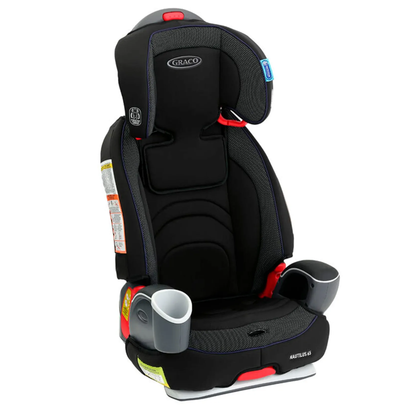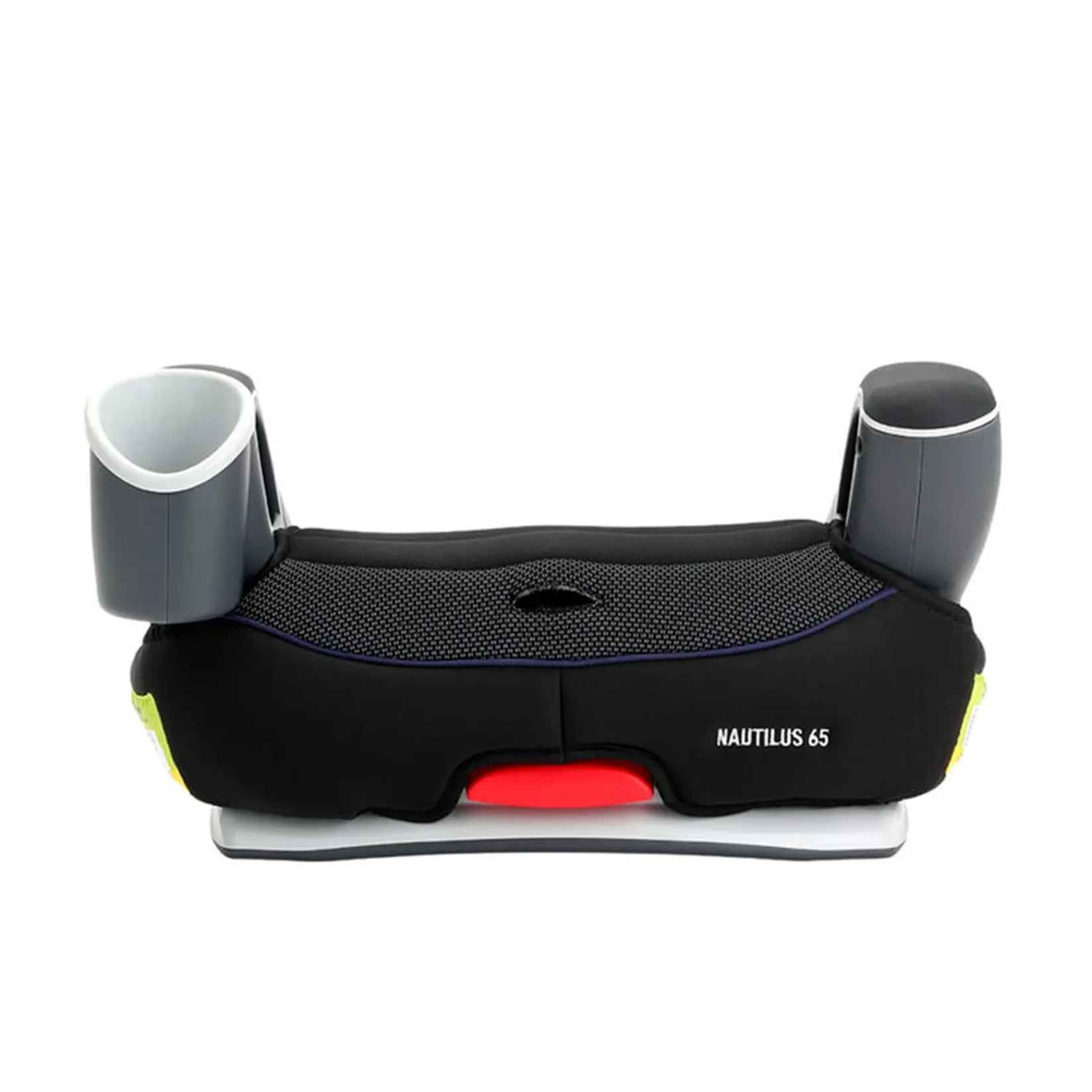 The Graco Nautilus 65 harness booster car seat goes the distance: in a 5-point harness 10-30 kg (22-65 lb), high back booster 18-45 kg (40-100 lb), and backless booster 18-45 kg (40-100 lb)