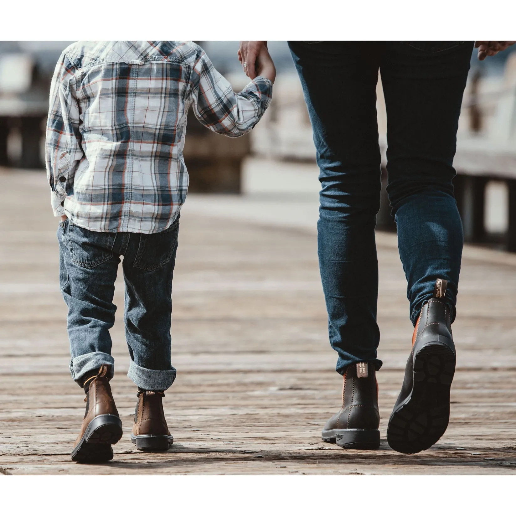 Blundstone 565 Kids Rustic Brown is Blundstone comfort and leather that ages beautifully. It’s the DIY boot every kid loves. Look Ma, no laces!