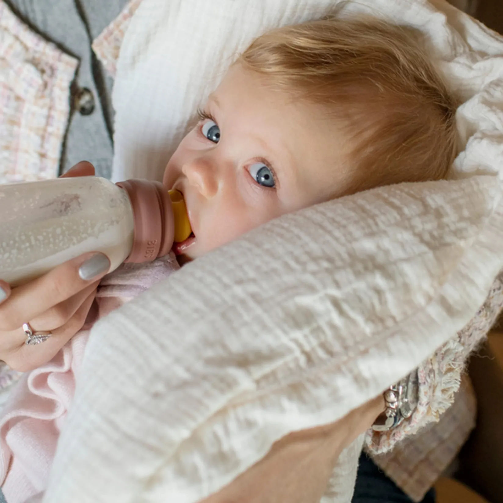 Bottle nipples should be sterilized regularly, all other bottle components are dishwasher top-rack safe.