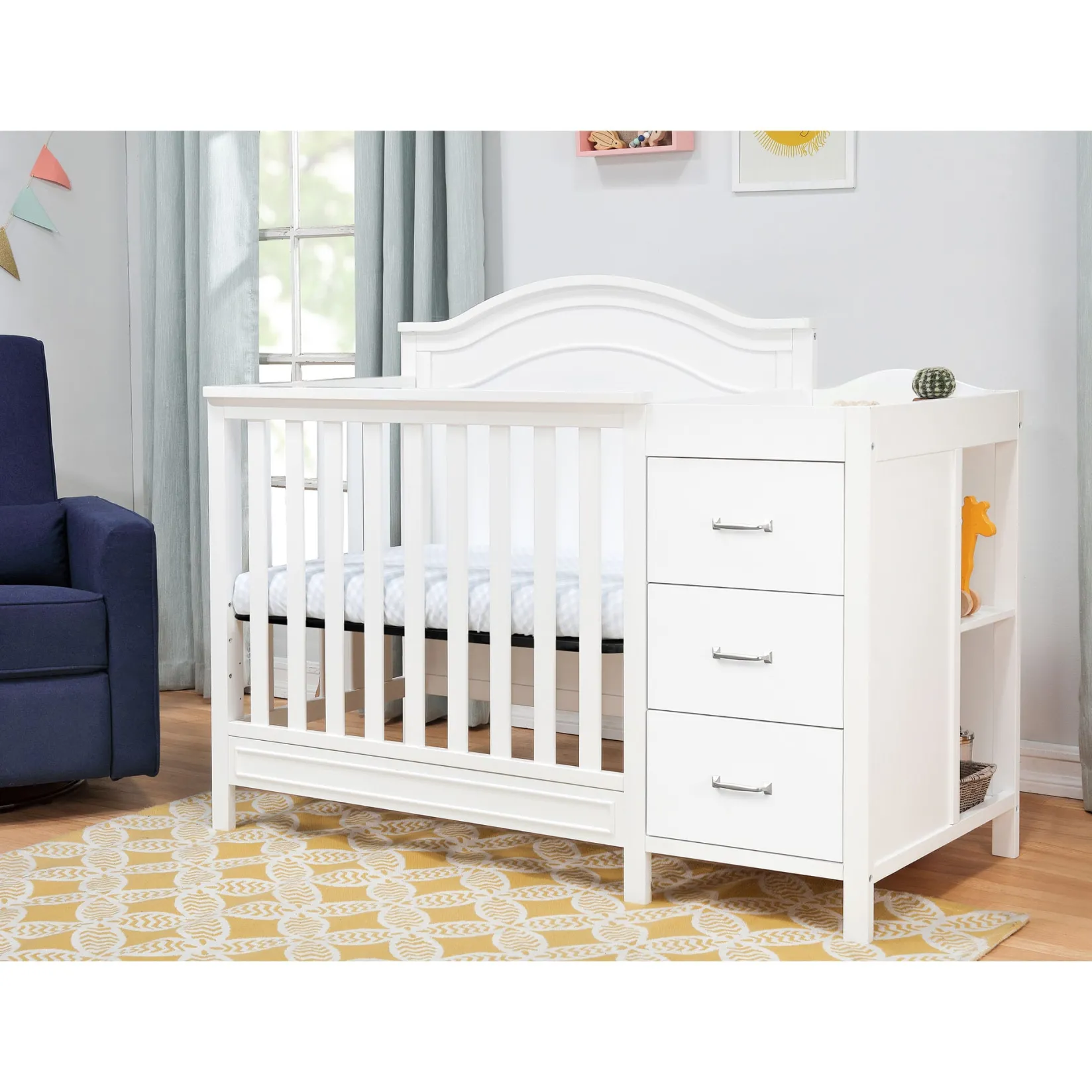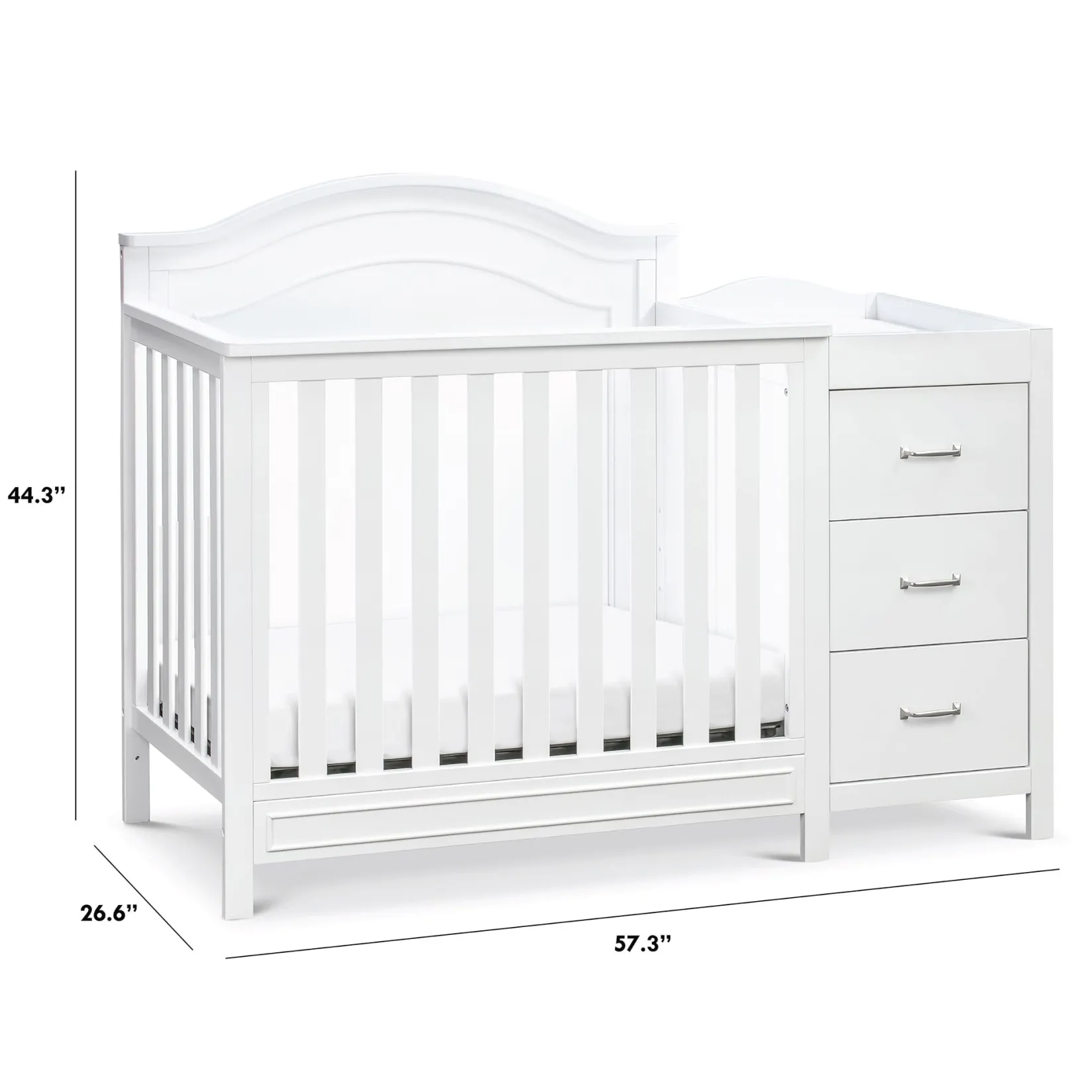 The Charlie 4-in-1 Convertible Mini Crib & Changer is a beautiful, comprehensive solution for any stylish nursery. Its compact size helps maximize smaller spaces, so that your baby has more room to play and grow! Beyond the nursery years, this crib converts to a mini toddler bed, day bed, and twin-size bed.