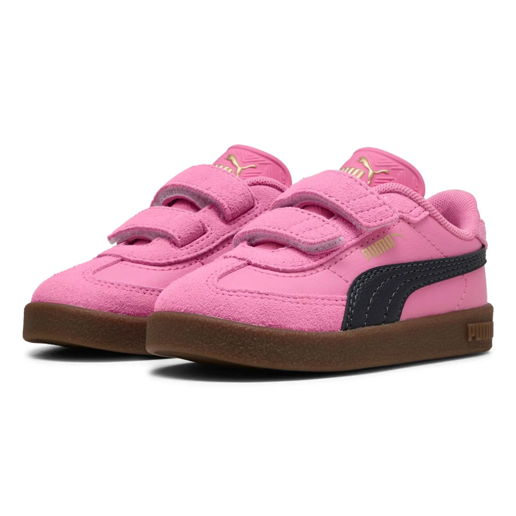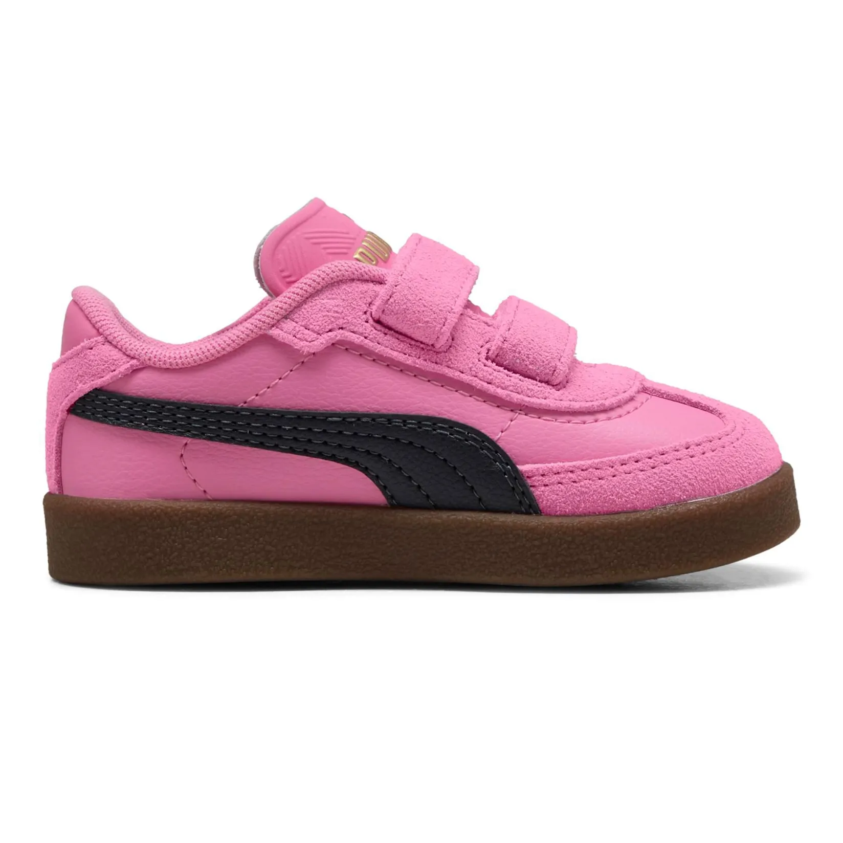 The great classic Puma Club is pulled from the archives and updated to meet the taste and style needs of the new generation.Thus, the Puma Club II Era is born, updating the classic terrace model by adding new design details but retaining the soccer dna. The streetwear style is accentuated, the upper mixes smooth leather and suede and golden archival logos. In this version for toddlers, the fit is made easier and faster thanks to the double upper strap closure. Not to be missed is the SoftFoam+ insole for enhanced cushioning and a light step throughout the day.