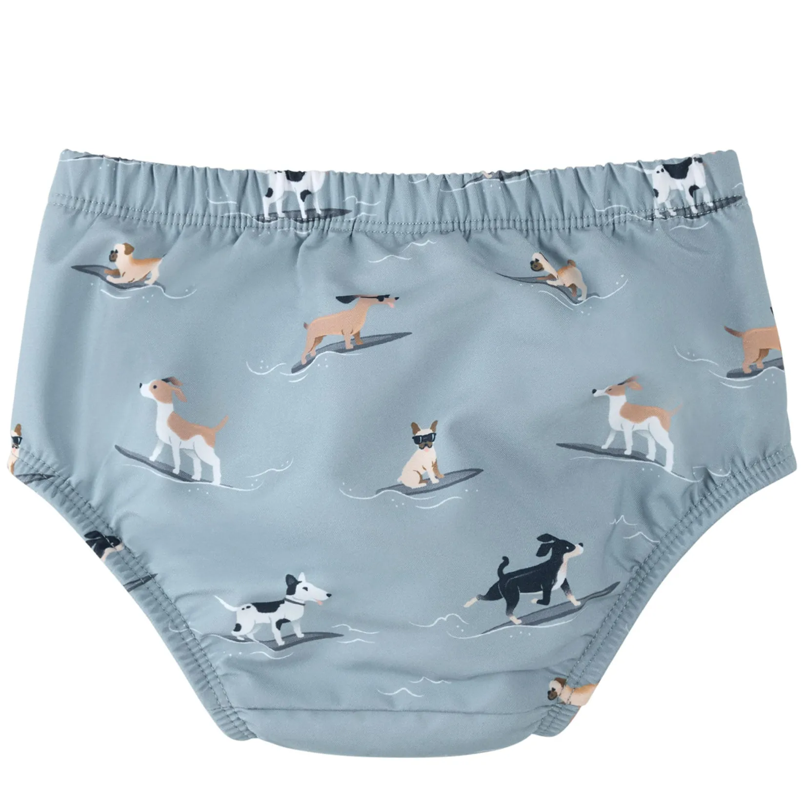 Perfect for splashing around in the paddling pool or playing in the sand at the beach, this comfortable swim diaper matches trunks, hats and rompers from the same collection. With a Surf Dogs print, he’ll love splashing through the water like an excitable puppy. Snap buttons on both sides make it easy to change diapers underneath.