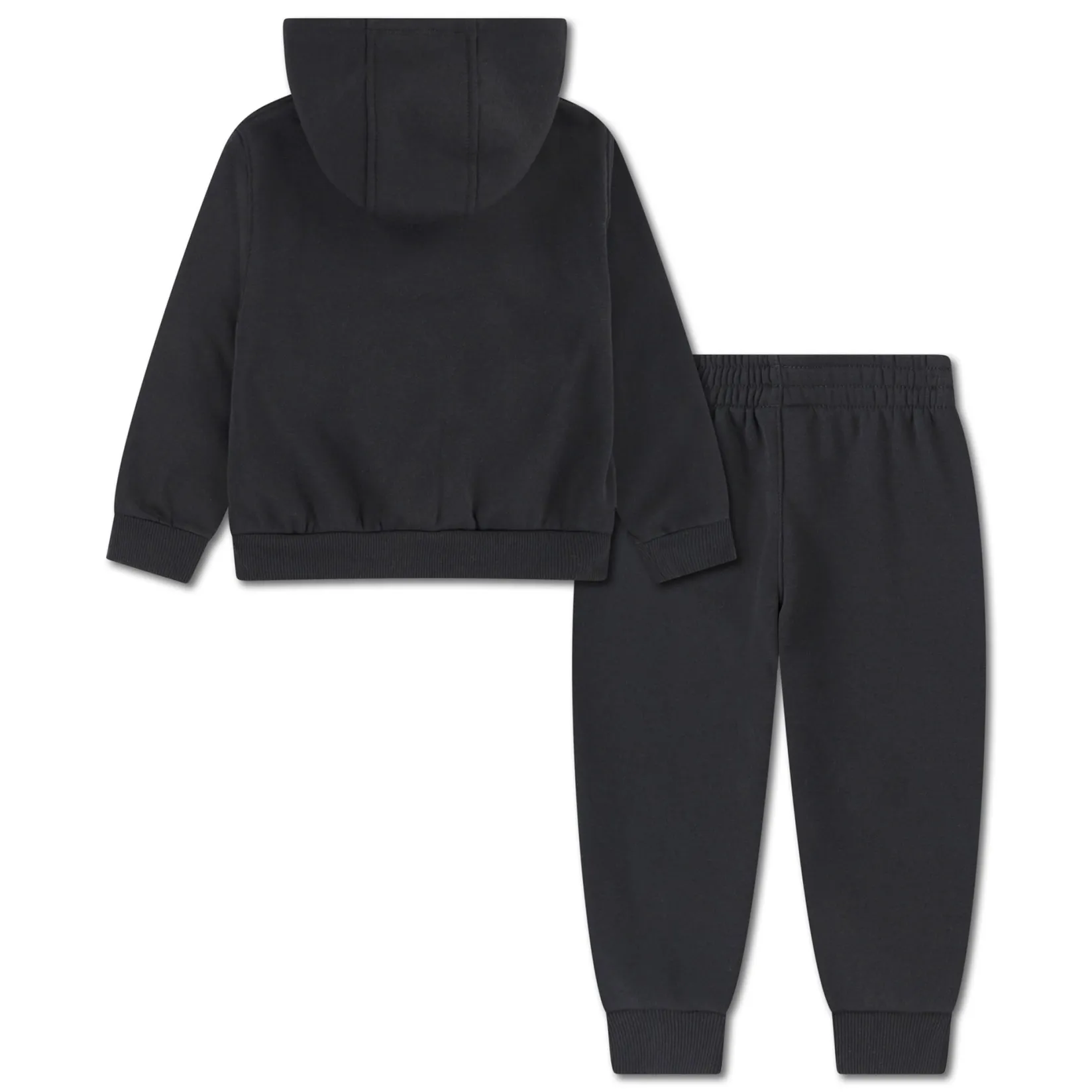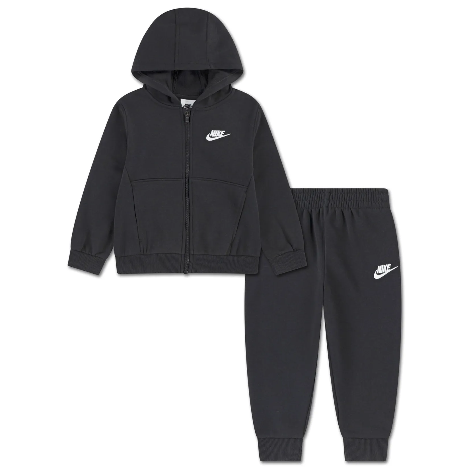 Looking for an easy way to outfit your little one in all-day comfort? This two-piece Nike set, made of soft fleece fabric, has you both covered. The roomy hoodie has a full-zip closure that makes layering over a tee or tank easy and the matching tapered pants have a stretchy waistband for a comfy, secure fit. Pair with any Nike top for a complete look that complements their favorite kicks.