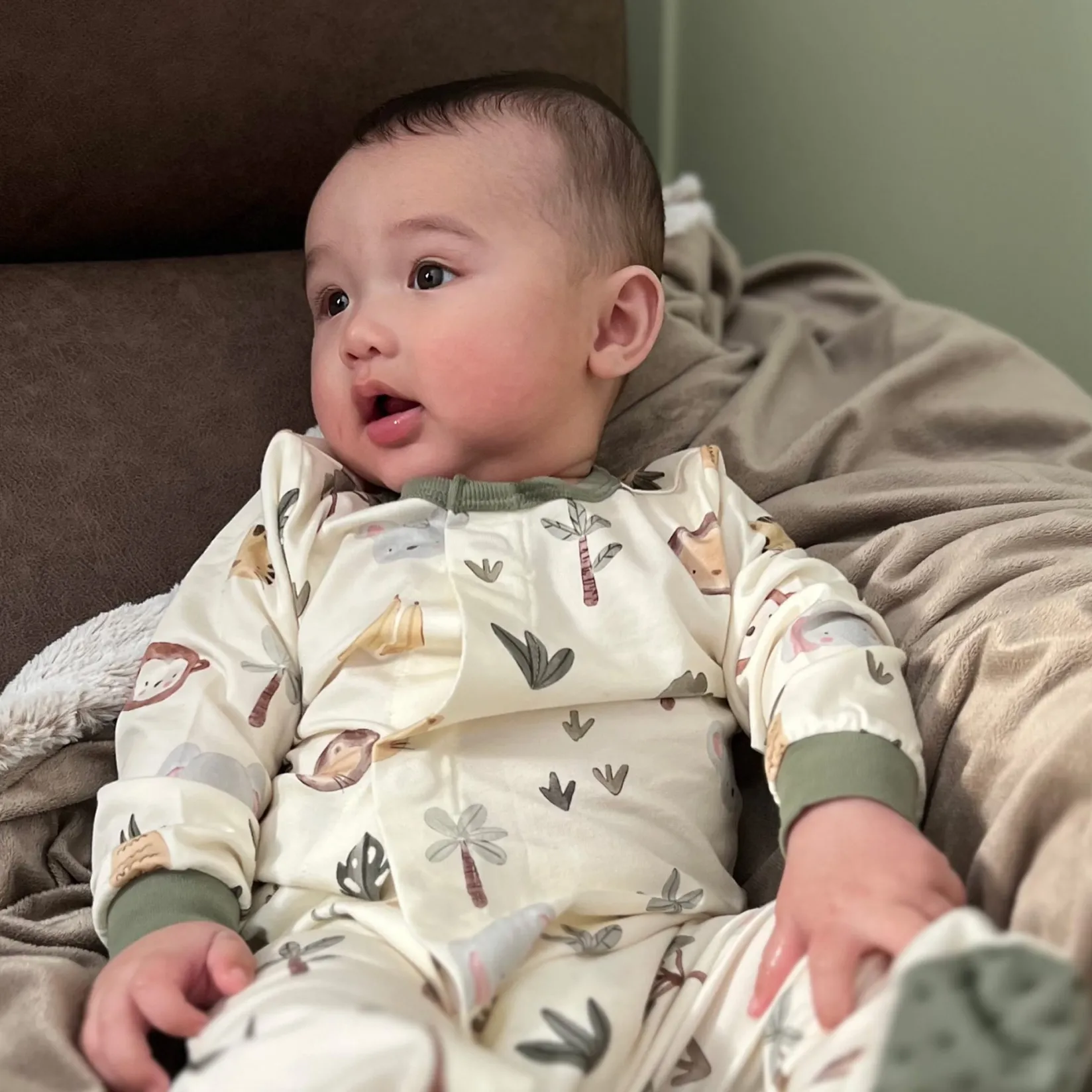 *Please note that because the pajamas have magnets, a very active baby may be able to open them if they are too tight. It is therefore advisable to choose a size larger than usual.