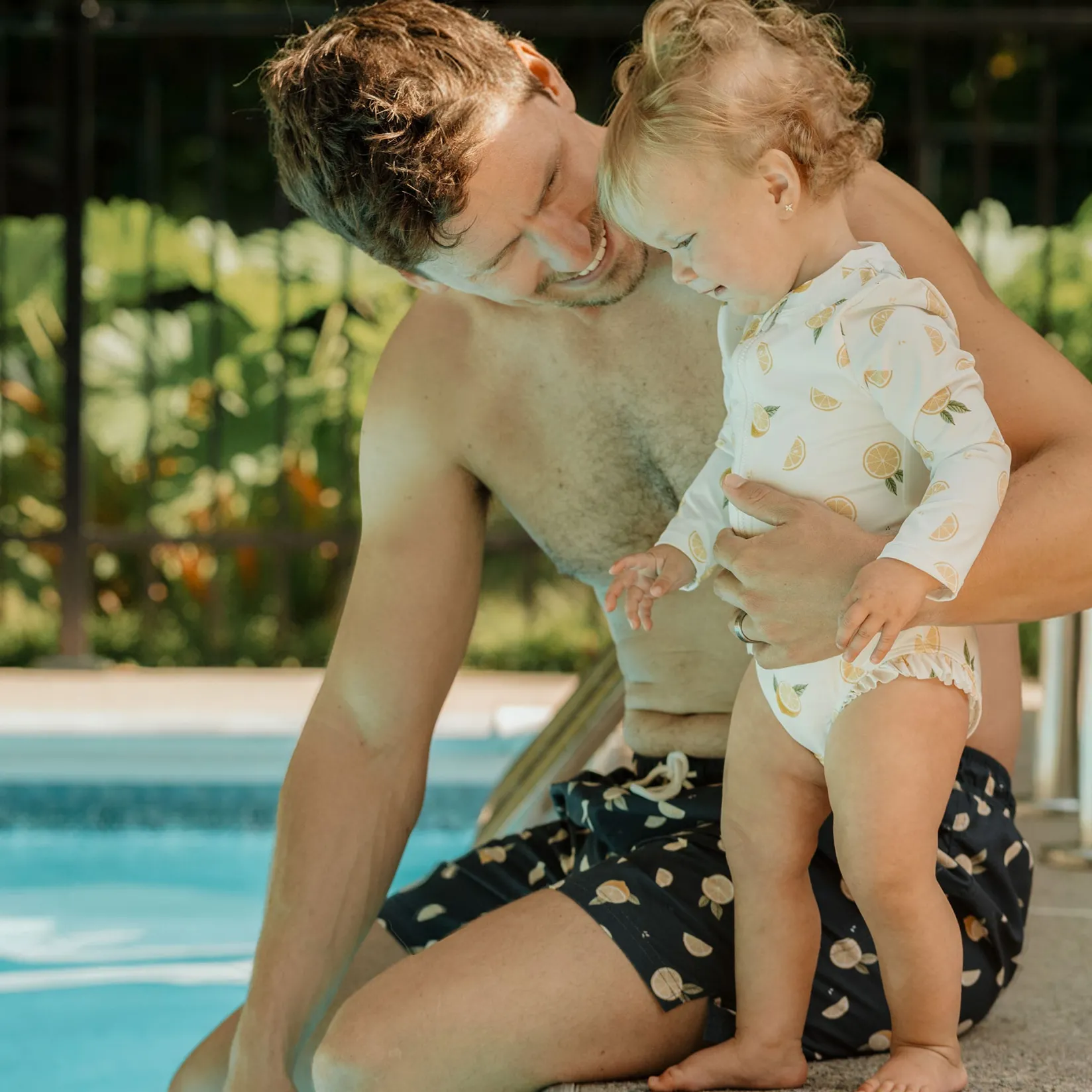 This refreshing summer staple features our zesty Lemons print and is designed to keep your little girl comfy, covered and confident through every wiggle and wave. The long-sleeved one-piece is perfect for those with delicate skin and with built-in UPF50+ sun protection, she’s safe in the sun’s hottest rays and the ocean’s saltiest waters. The front zipper makes the piece super easy to remove after a day of splashing while the weft knitted material is lightweight and quick-drying – so she can dip in and out till her heart’s content.