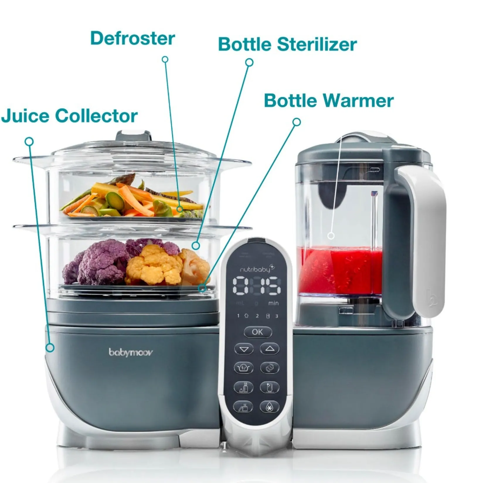 -Equipped with a tactile central console and 10 automatic programs, you will be surprised by the ease of use of the Nutribaby (+): 1 button = 1 function