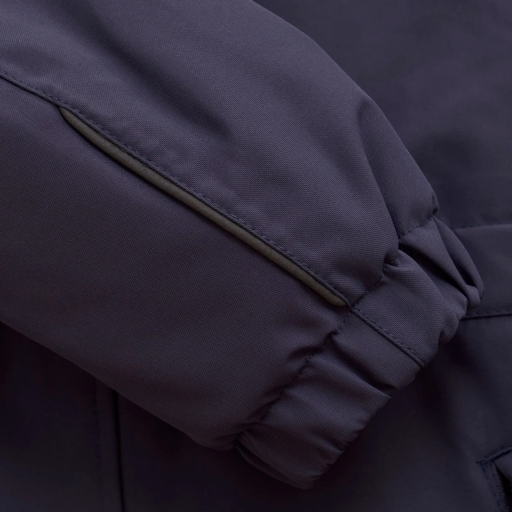 Warm coverall for your child in durable material. The material is breathable, windproof and waterproof, so your child can stay out in the rain, snow and wind without getting cold and wet. Tested wear resistance of 60,000 rubs, water column pressure of 20,000 mm. and breathability of 10,000g. The coverall has a quality zipper closure at the front and on the outside pockets at the front. Chin protectors make sure that the zipper feels soft under the chin. The coverall has a detachable hood where the fake fur is detachable as well. Adjustable rubber boot straps that can be put under the boot to hold it in place. Reflective details on the back and on the sleeve. It has a name tag inside. The coverall is made of recycled material. Coated with BIONIC FINISH® ECO. Certified acc. to GRS – Made with more than 50% Recycled Material