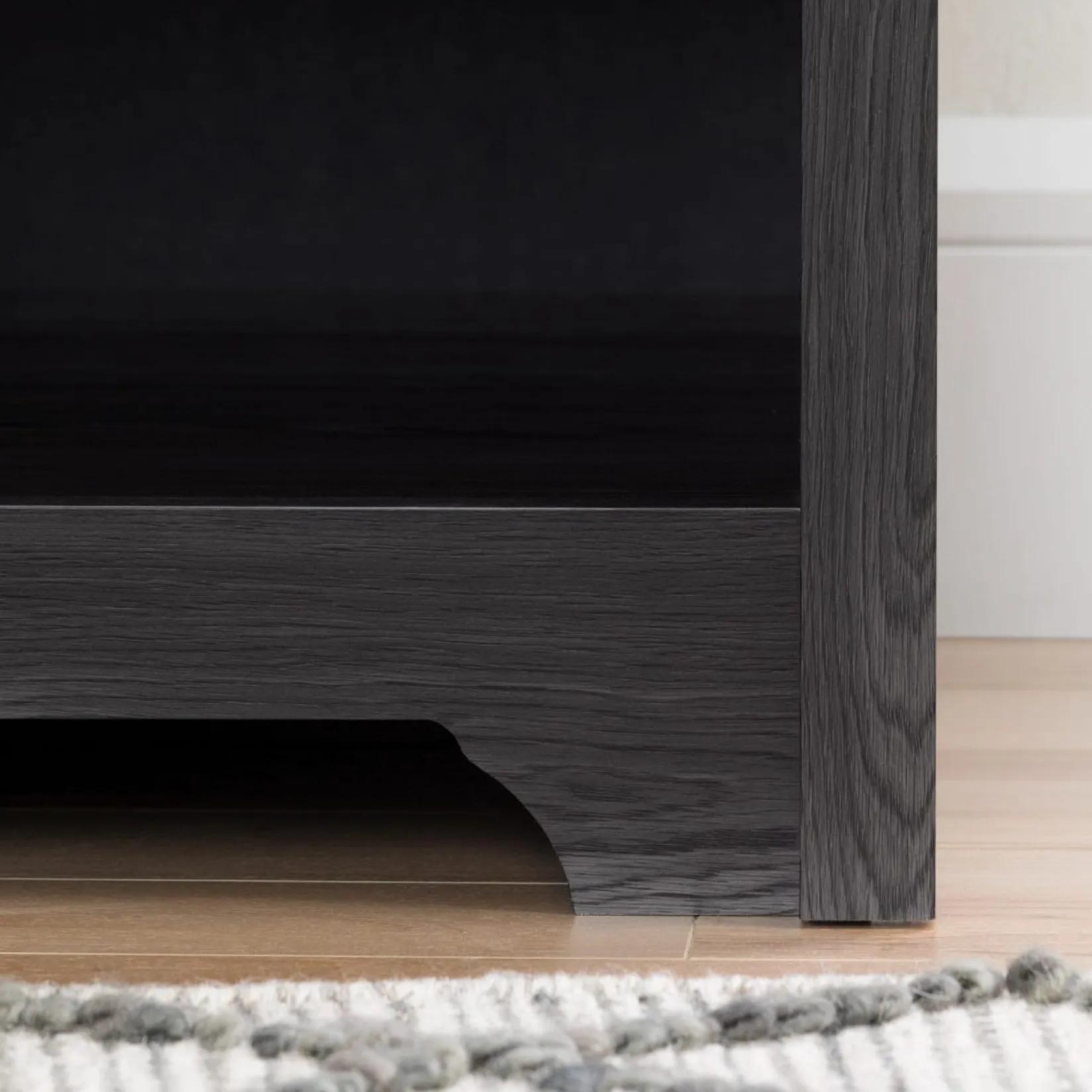 This nightstand with a cutout kickplate will give your bedroom a contemporary and distinguished look. In order to maximize bedside storage it features an open storage space and a drawer decorated with an elegant metal handle. With a sturdy table top suitable for a lamp, cell phone and books, the bedroom cabinet meets all your storage needs.