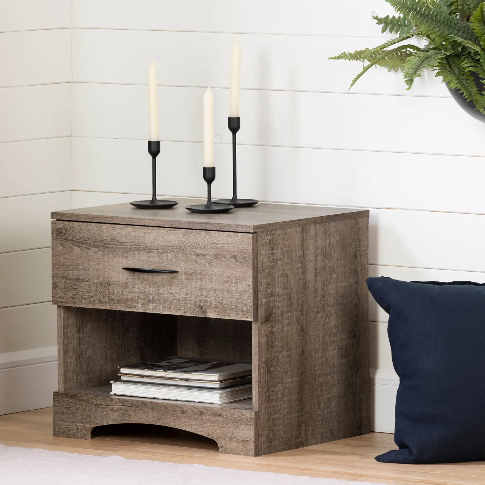 Convenient Storage Featuring an open easy-access storage space ideal for bedside reading materials, the bedroom nightstand also includes a convenient and practical drawer with smooth metal drawer slides and a durable metal handle. The open bottom storage is the perfect place to store smaller personal items for easy access, while the drawer is suitable for clothing or accessories.