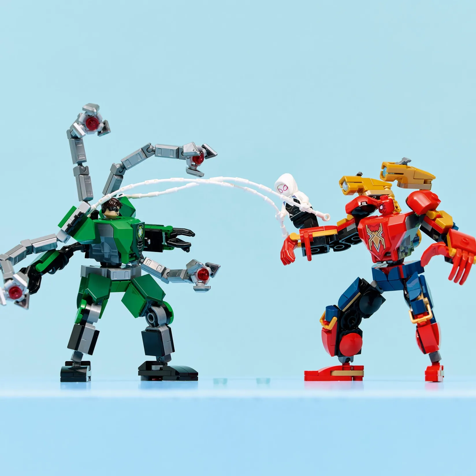 -Le robot de Spider-Man a des fusils à bouton-poussoir; le robot de Doc Ock a des tentacules mobiles