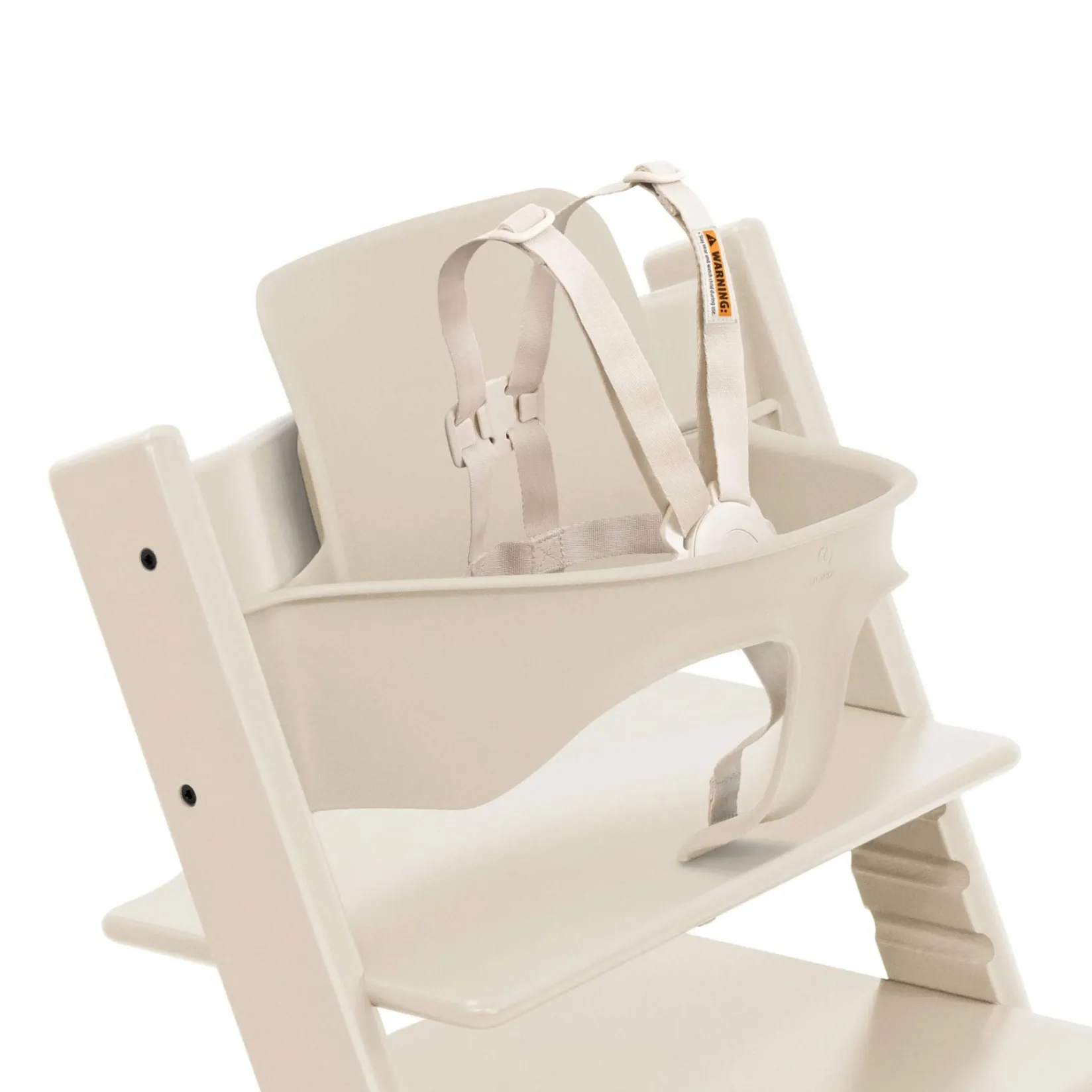 -Tripp Trapp® Baby Set² now has a new safe, easy, and intuitive harness buckle, 2 click-in points and a quick, one-click release button.