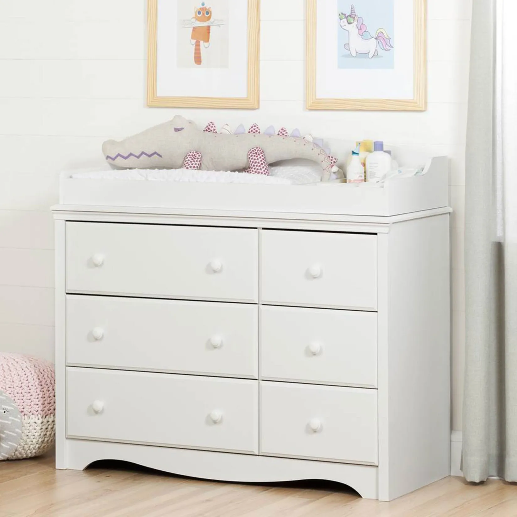 – Spacious storage: The changing table features 6 drawers – 3 large and 3 small – perfect for storing diapers, clothes, bedding and toys in any compact nursery or bedroom