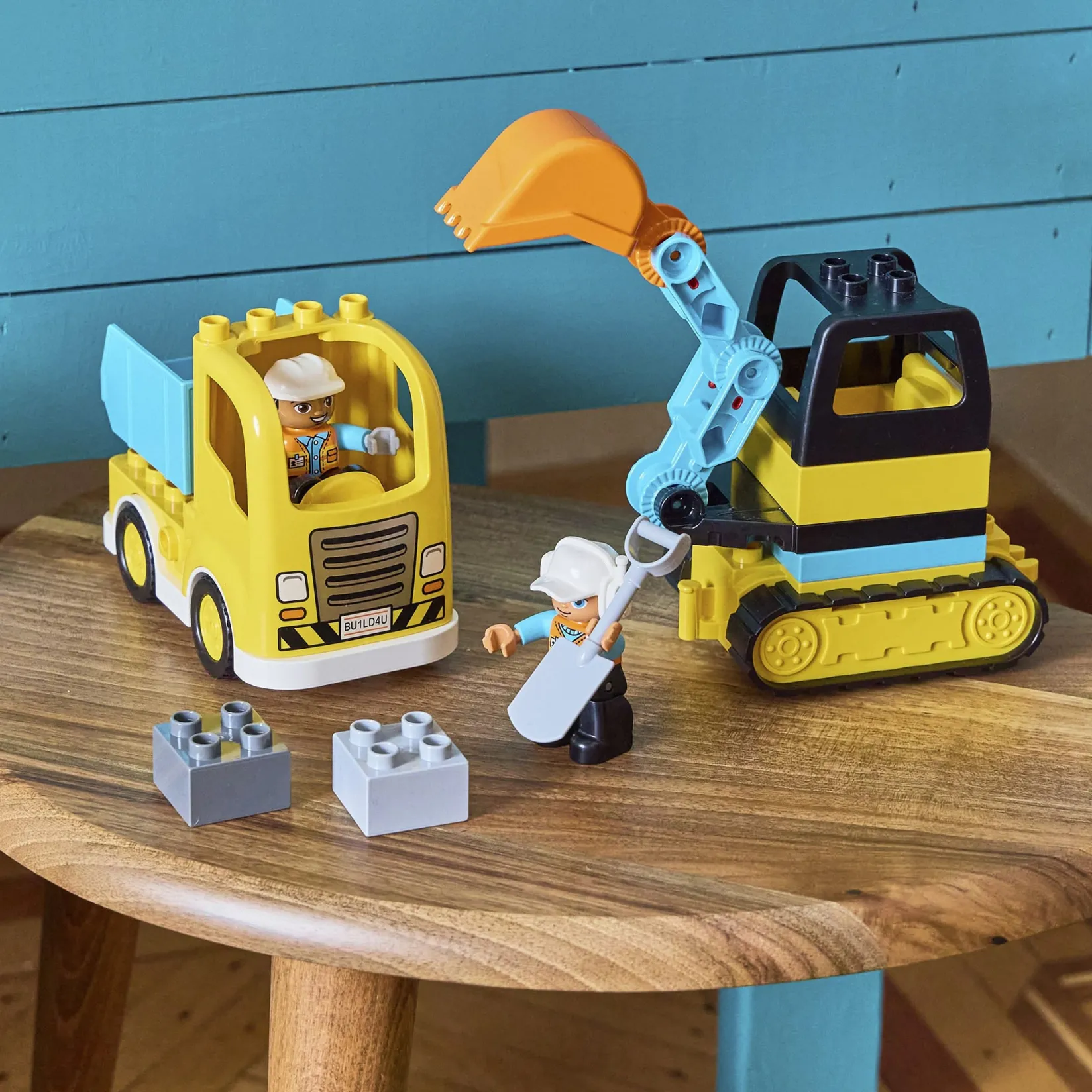 The LEGO® DUPLO® Truck and Tracked Excavator (10931) toy encourages little builders to explore endless open-ended play. As they role-play construction scenes with the truck, digger and 2 workers, toddlers develop valuable physical and cognitive skills that last a lifetime.