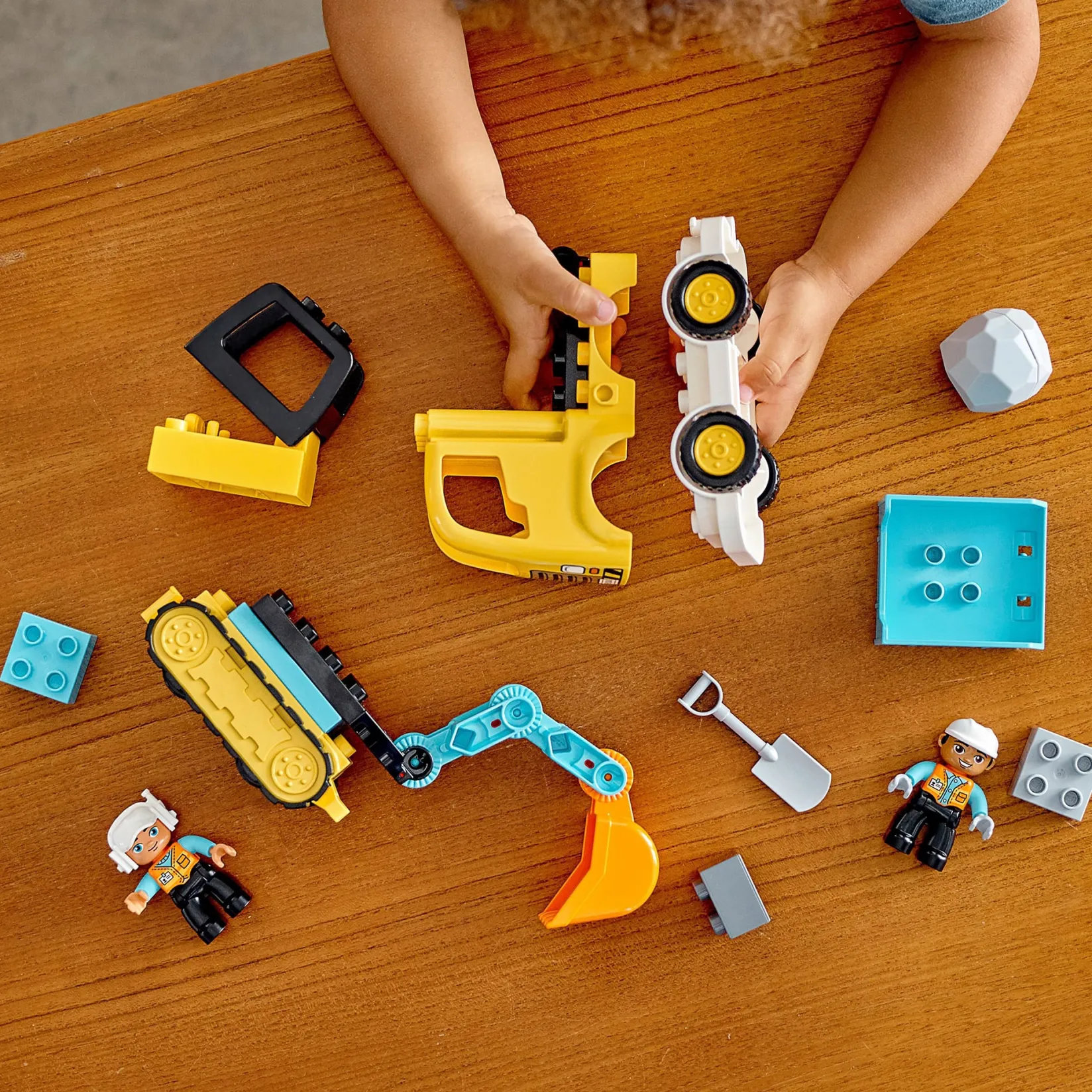 Little construction workers master essential skills while having creative fun with the LEGO® DUPLO® Truck and Tracked Excavator set.