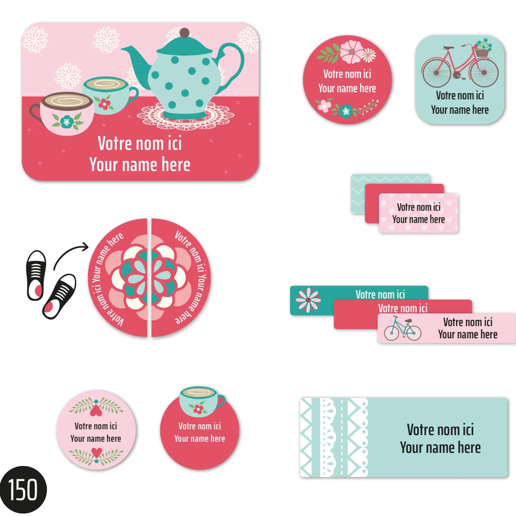The set of personalized sticky labels Clément becomes your best ally for the quick identification of your family’s personal items. In a few seconds, young and old will be able to recognize their school items, lunchbox items, sports equipment, shoes, clothes, etc. Waterproof and durable, the labels are not afraid of freezing, water, heat, or steam. They are resistant to the microwave, refrigerator, freezer, dishwasher, washing machine, and dryer.