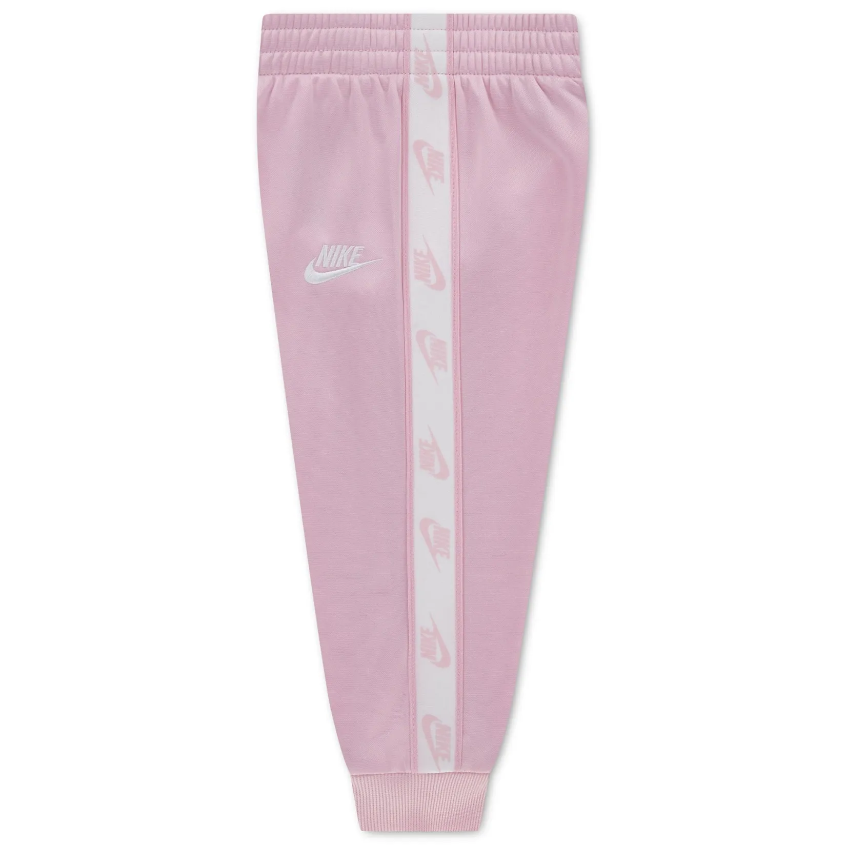 Dress your littlest athlete in this performance tracksuit from Nike, which is made of soft poly pique knit fabric enhanced with moisture-wicking Dri-FIT Technology to help keep them cool and dry while they play. The full-zip jacket has a roomy cut to make layering easy and the ribbed cuffs and hem help retain warmth. The matching pants have a stretchy waistband for a comfy fit and tapered legs with ribbed cuffs that provide a cozy, secure feel. Pair with any Nike tank or tee for a completed look.