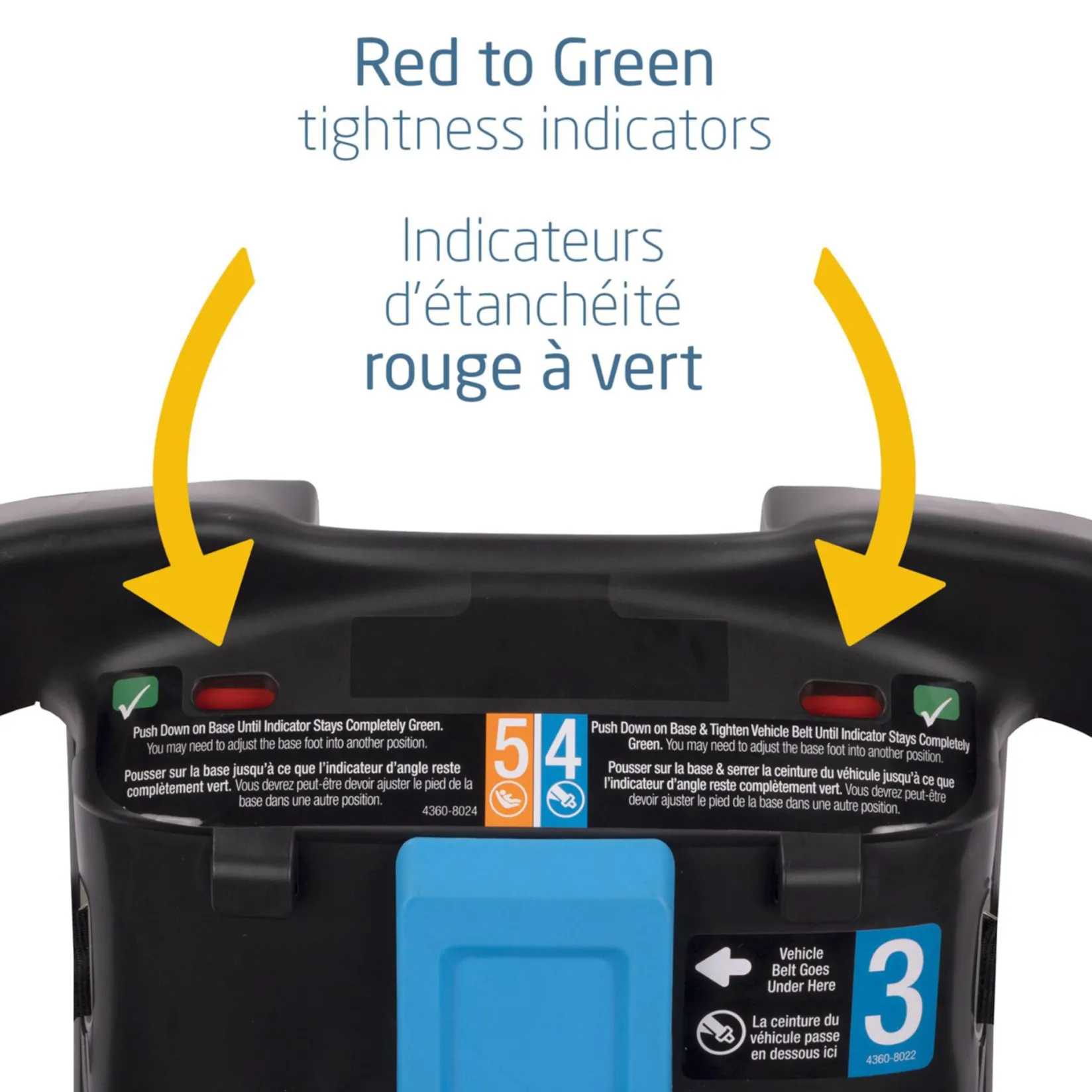 The red-green tightening indicators provide a visual confirmation of accurate installation, whether using a vehicle seat belt or LATCH system.