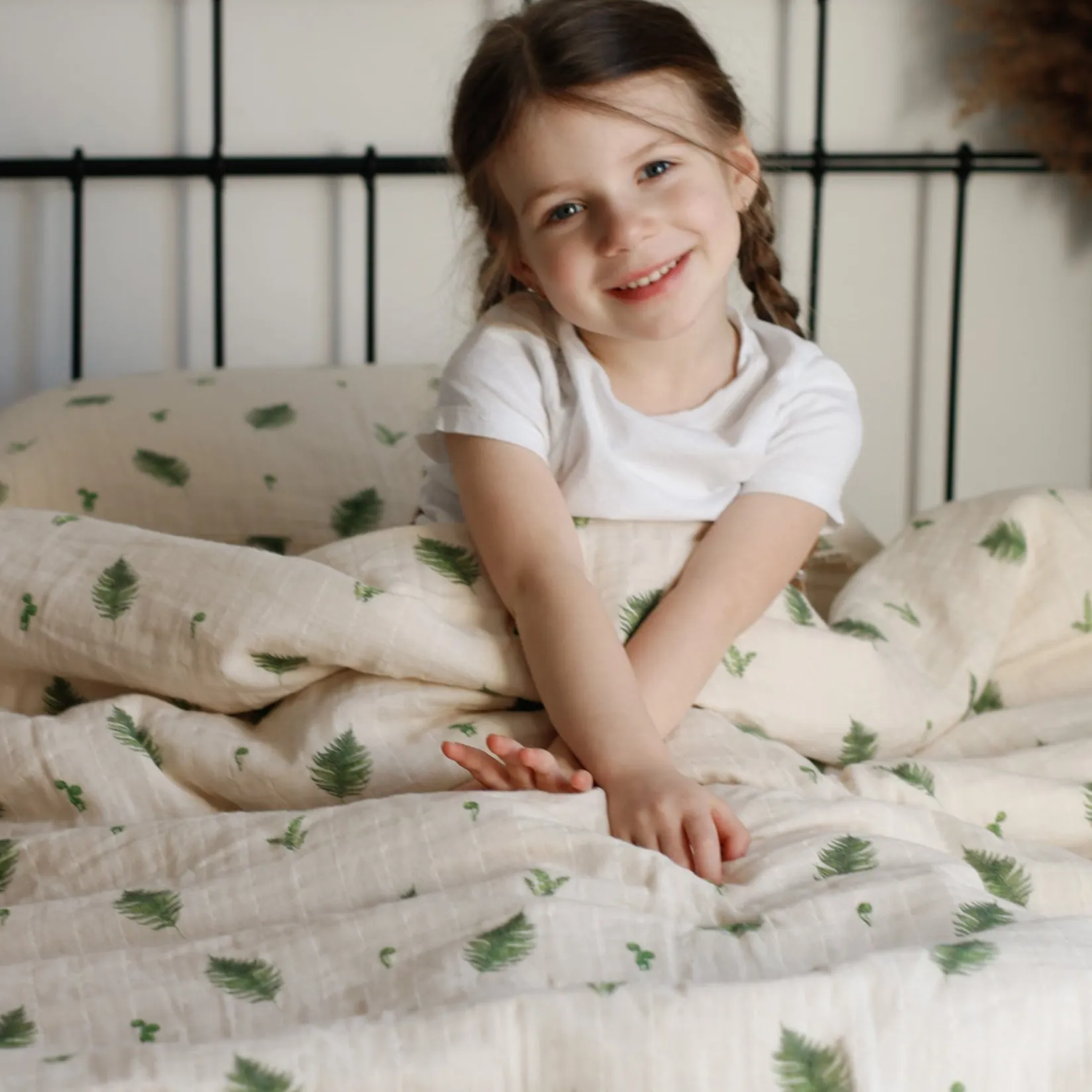 Made from premium organic cotton muslin, this set includes a twin bed size comforter and a pillowcase.