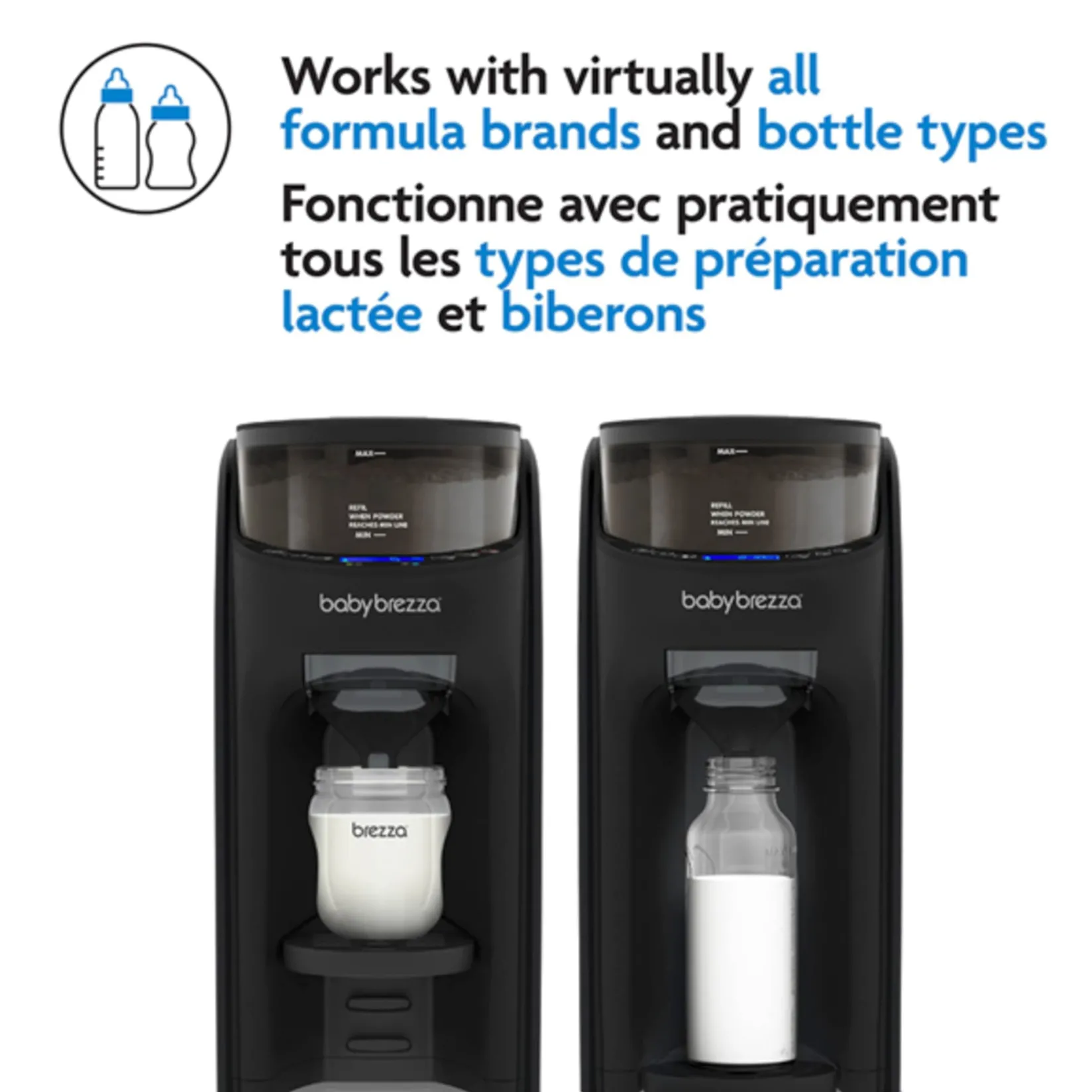 Works with virtually all formula brands and all bottle brands/sizes. Easy to use with all digital controls.