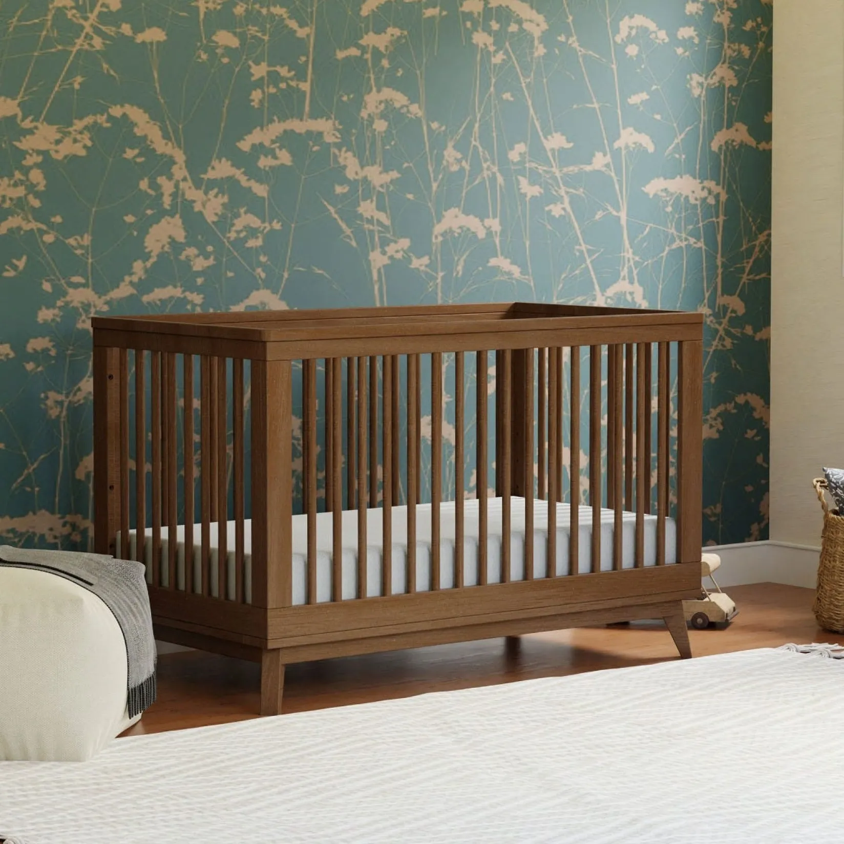 The Scoot 3-in-1 Convertible Crib is the perfect centerpiece to your mid-century modern nursery. Its retro-inspired features add a charming vibe for babe’s new space. Modern and functional, an included toddler bed conversion kit allows you to seamlessly convert from crib to toddler bed to daybed as your babe grows. Breathe easy knowing the Scoot is made with solid New Zealand pine wood and is Greenguard Gold certified making it a smart, safe, and stylish choice.