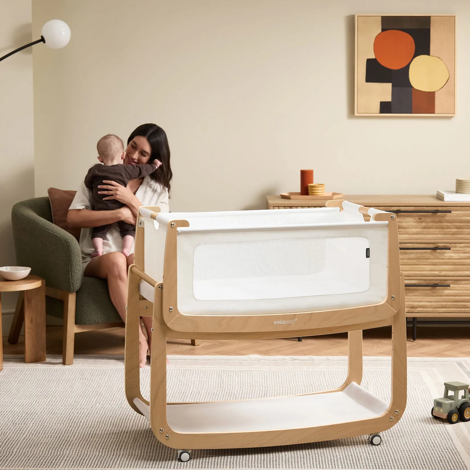 Meet the latest generation of the SnüzPod, the original bedside crib that has supported over one million dreams. Combining safety, flexibility and smart design, the SnüzPod5 keeps baby close during their first six months. Breathable mesh windows and a 3D mesh mattress help regulate temperature, while the portable design and wheels provide everyday convenience.