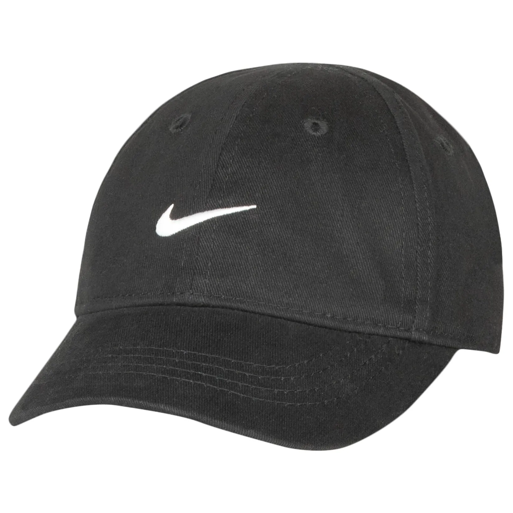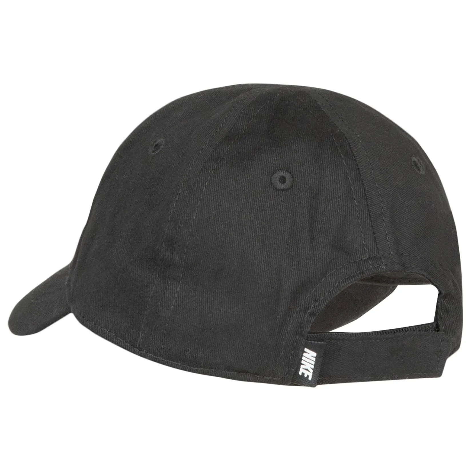 Top off the littlest athlete’s fit with this Nike cap, which is made of cotton twill with a soft, brushed finish in a classic six-panel construction. The curved brim and built-in sweatband help to keep your child’s head cool and dry, and the adjustable strapback closure provides a comfy fit.