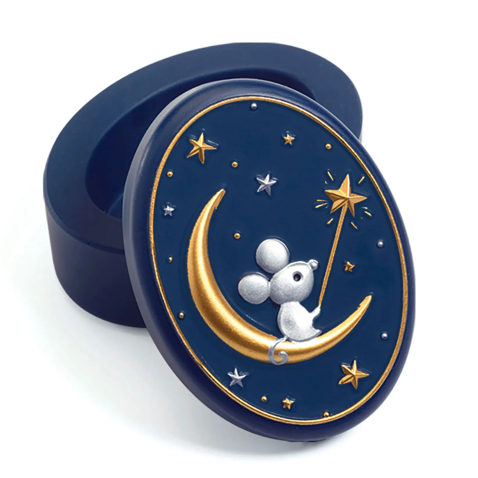 A tooth box with a pretty illustration in relief and in colours that shimmer (silver and gold effect). This box will sit perfectly in the child’s bedroom.