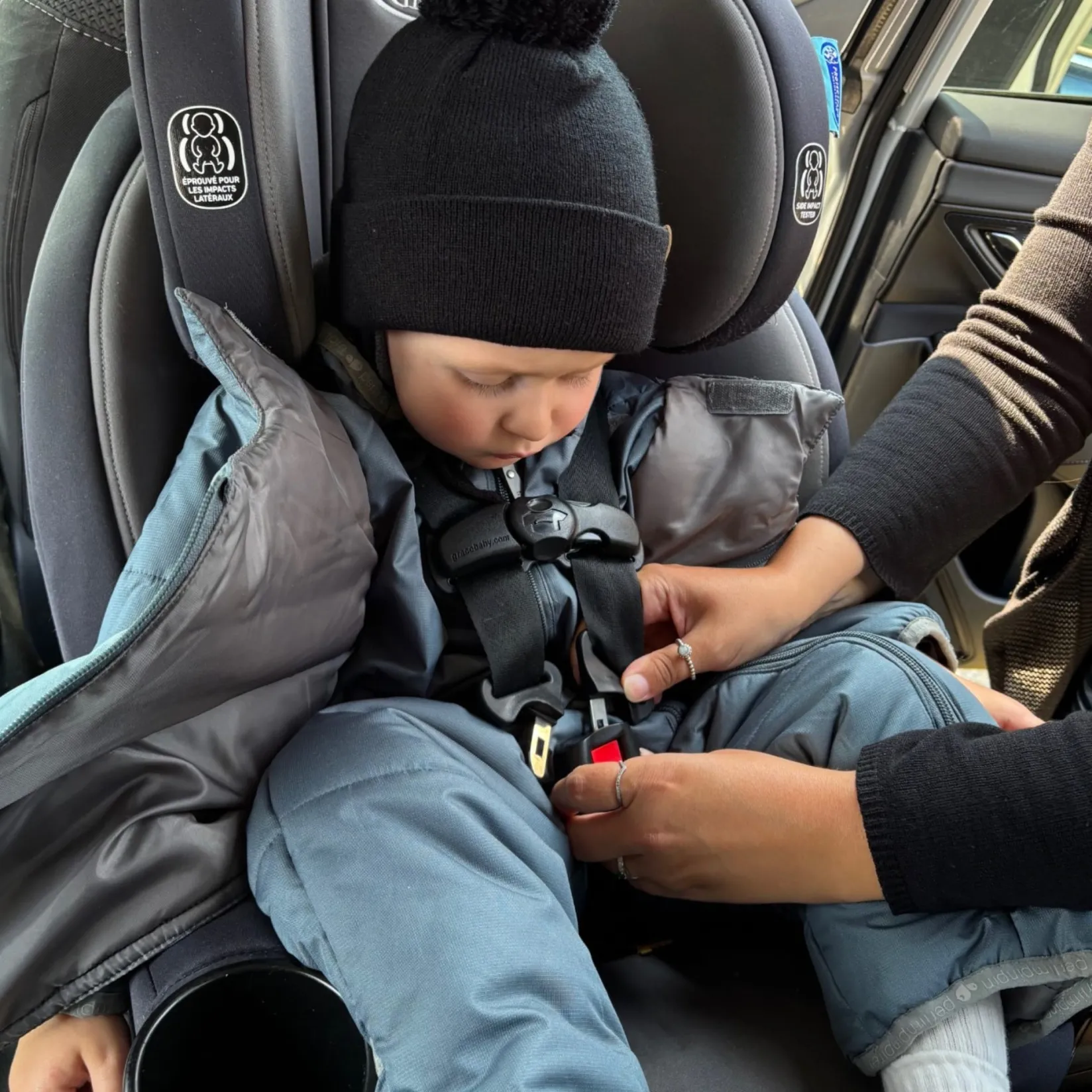 – The unpadded chest area allows for a tighter fit with car seat straps.