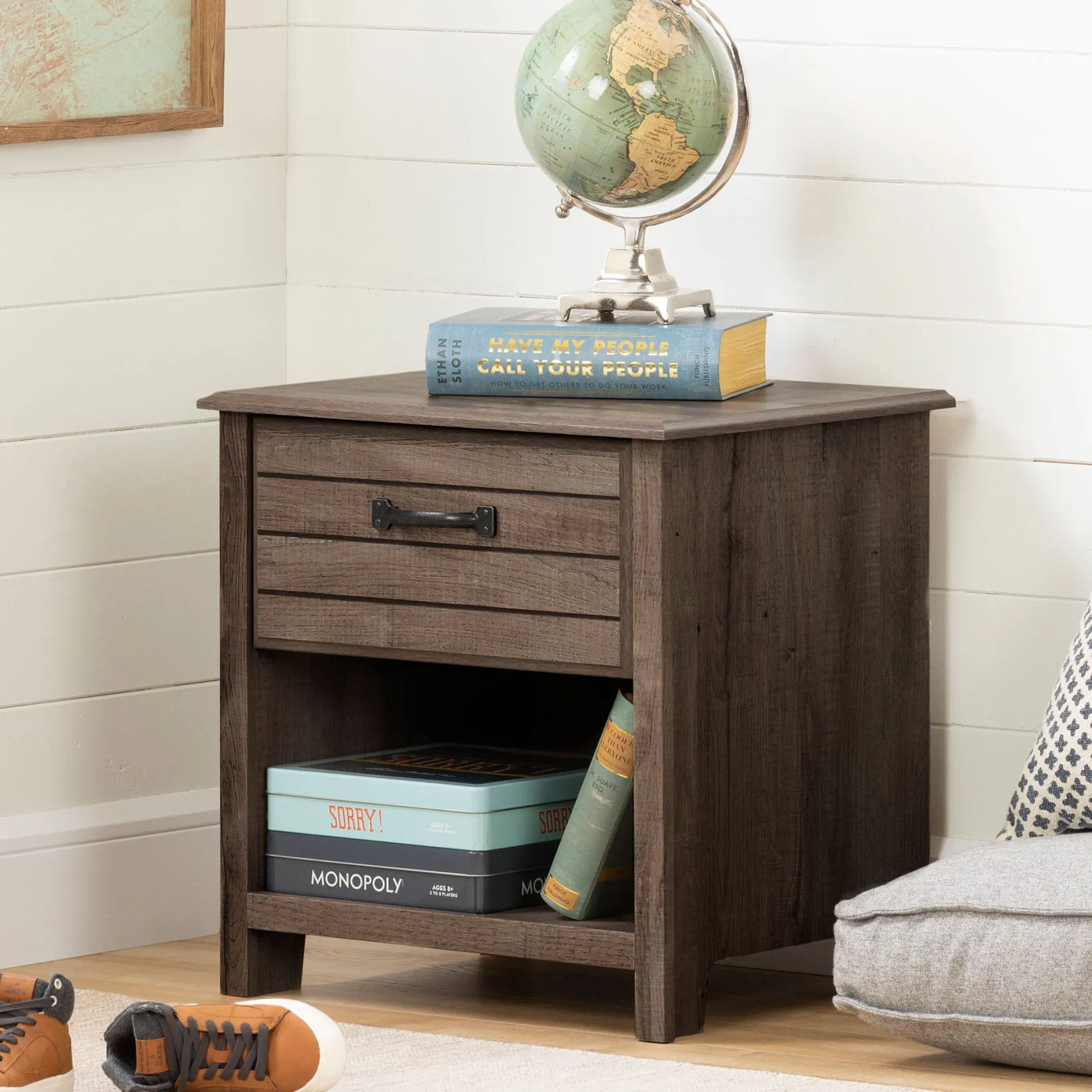 Featuring 1 roomy drawer, open storage on bottom, and a sturdy top, this nightstand is the perfect bedside assistant. With metal slides for smooth and quiet use, access to your belongings is quick and easy. Enjoy an organized room with this trendy nightstand.