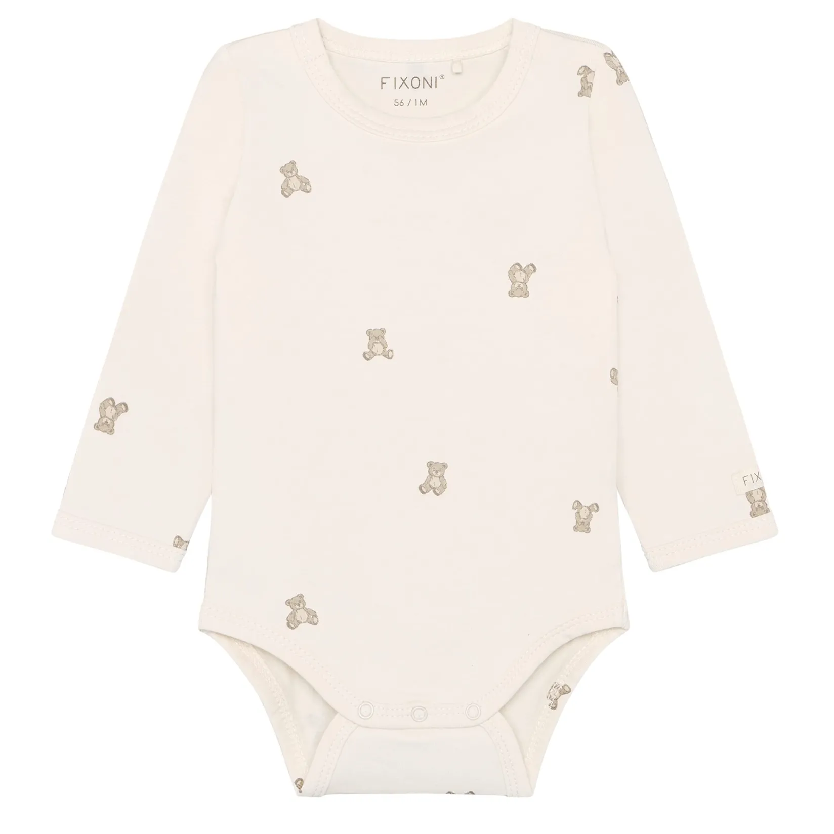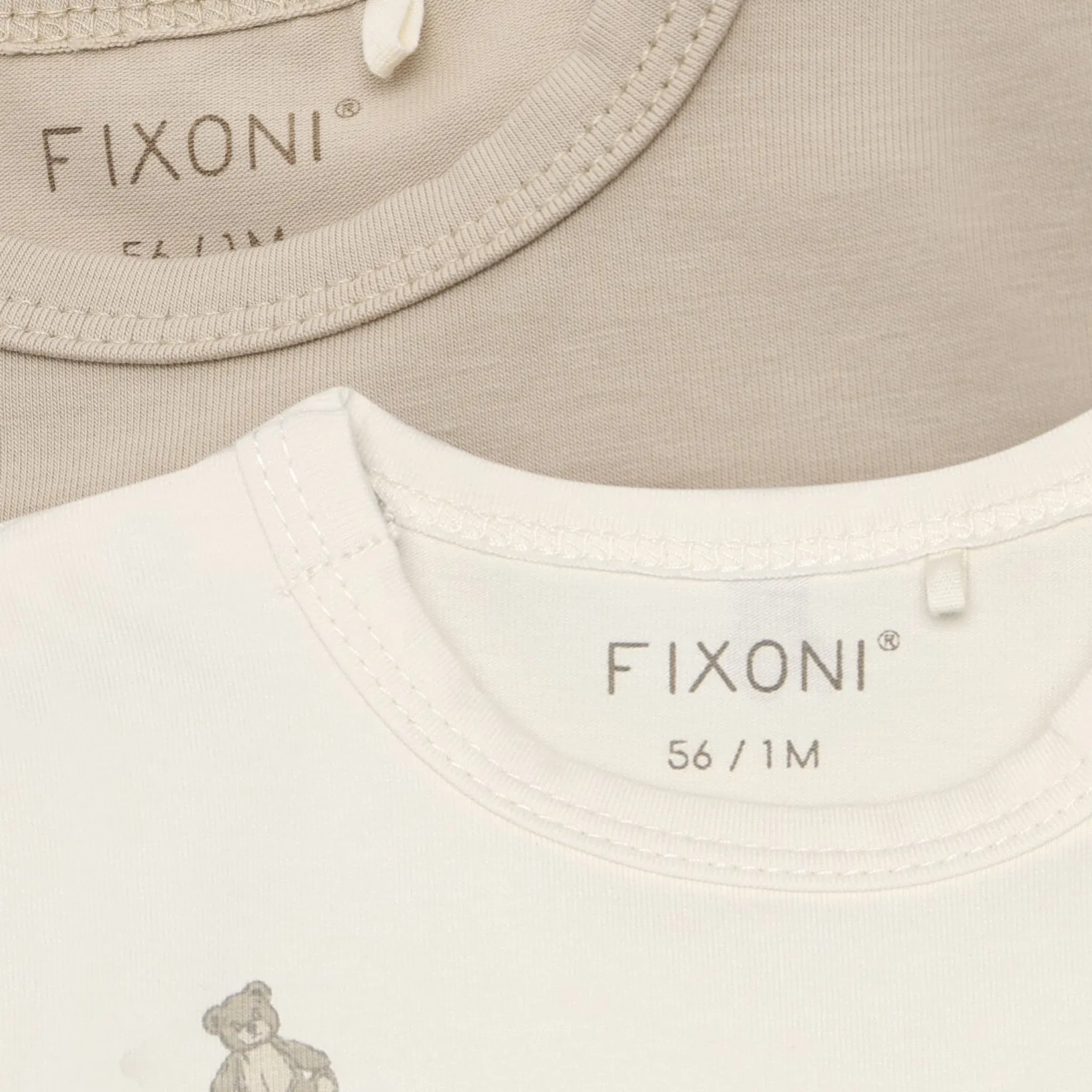 Long-sleeved body from FIXONI. Sold as a 2-pack with an all-over printed body and a solid-colored with a print in the front on the chest. The body opens with practical snaps between the legs, so it can be put on and off easily. Certified acc. to GOTS – organic CERES-0366 Certified acc. to OEKO-TEX® STANDARD 100 Cert. No. 2276-364 DTI