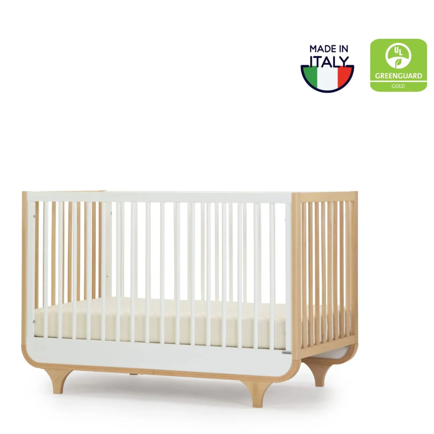 Don’t let the joyful curves and spunky sweetness of the Jolly 3-in-1 Convertible Crib fool you – this Italian-built beauty is as functional as it is fun. Complete with three different mattress settings to grow along with baby, as well as the ability to transform into a curvy, cuddle-ready toddler or day bed, the Jolly is GREENGUARD Gold certified, crafted with durable beechwood, and designed to bring joy to your family for generations to come.