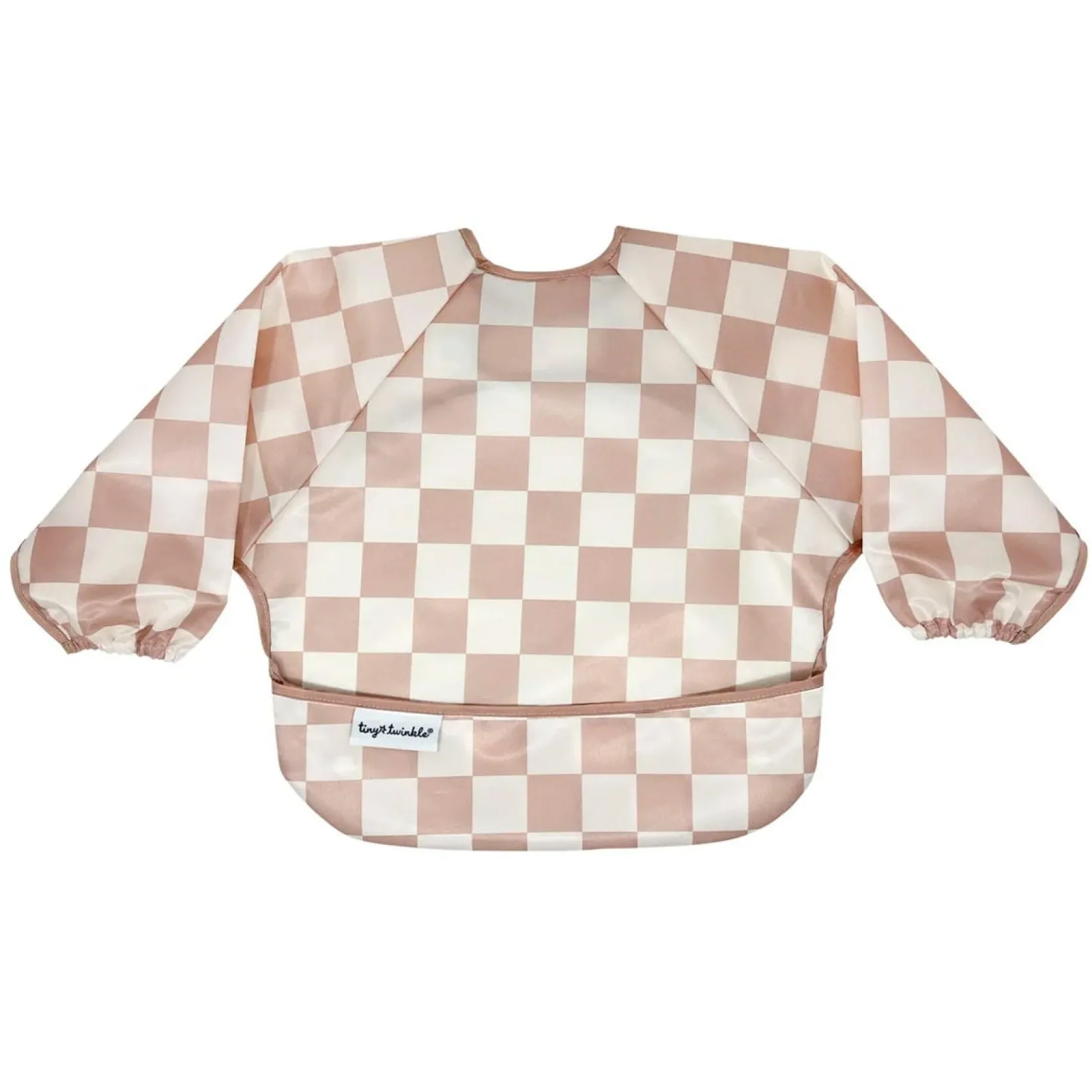Tiny Twinkle Mess-proof Full Sleeve Bibs are 100% recycled polyester that is made from recycled plastic. Soft, lightweight and waterproof, these bibs are the best way to protect from messes and keep baby comfortable during mealtime!