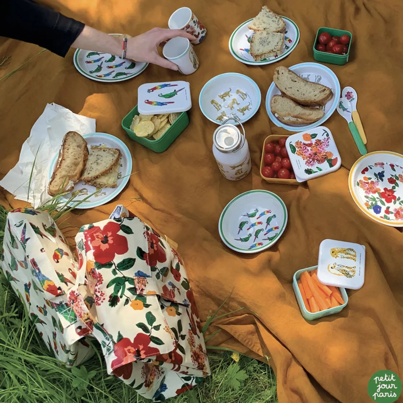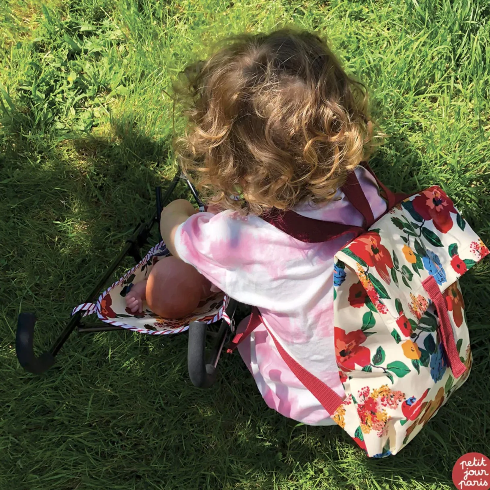 A cotton backpack to transport toy cars, colouring books, a change of clothes or plushies! Ultra light, practical with a simple flap and a velcro ribbon to close it.