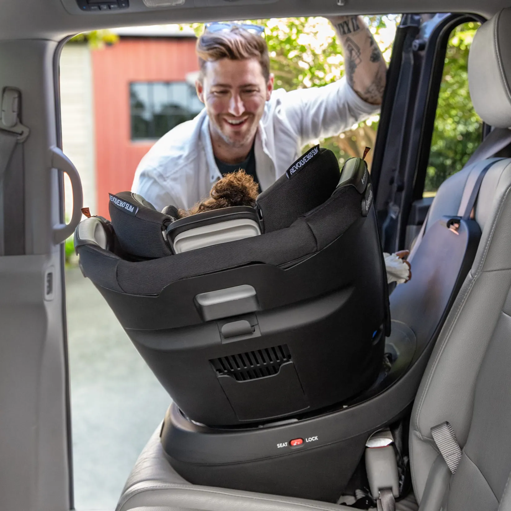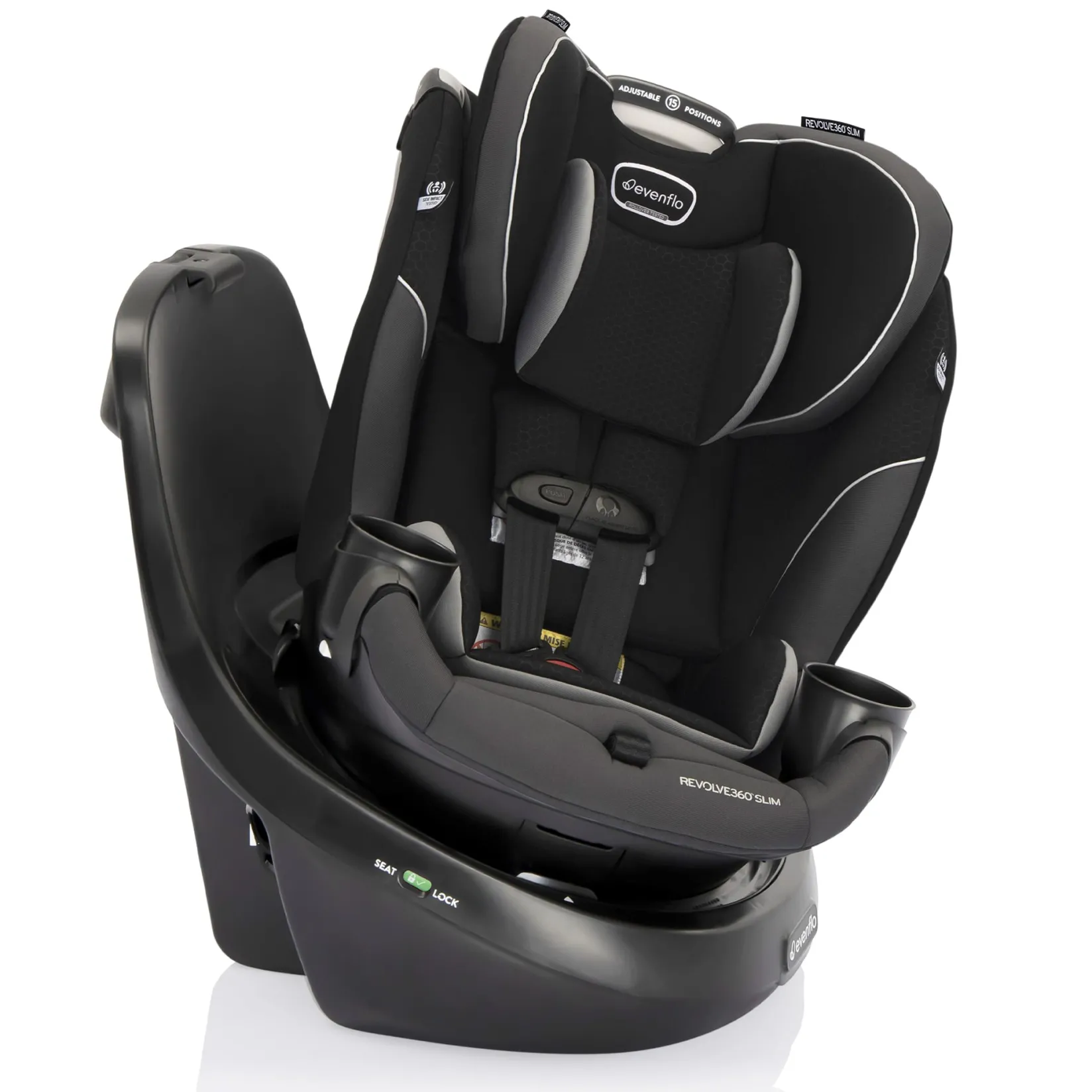 Got a compact vehicle and a little one on the way? The Evenflo® Revolve360™ Slim 2-in-1 Rotational Car Seat combines space-saving design, comfort, and innovation. With a slim 16.7” footprint, it maximizes your backseat space without sacrificing your child’s comfort or safety. Its one-hand 360° rotation makes getting your child in and out of the car effortless — convenience that truly comes full circle.