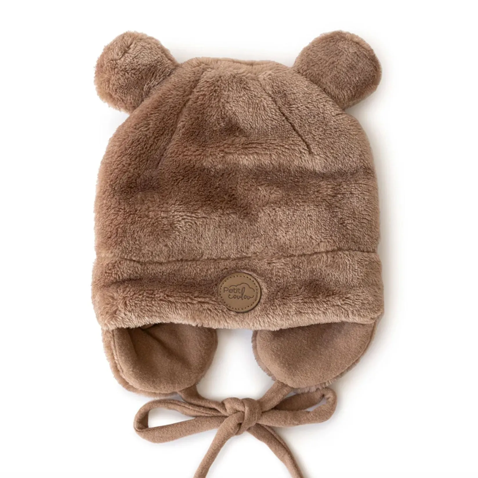 Teddy bear hat with earmuffs and drawstring