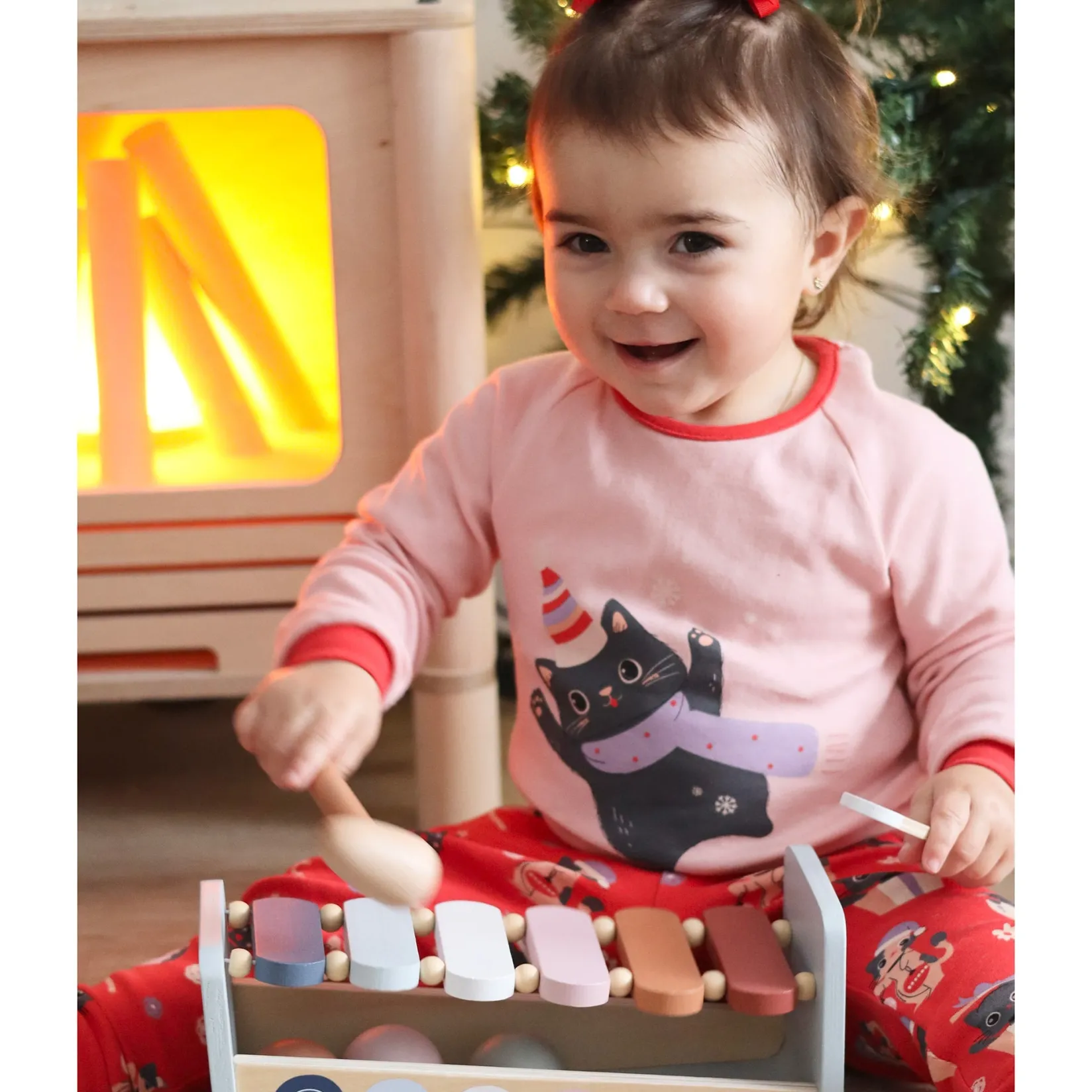 Pajamas & Bathrobes>Roche Ciseaux Winter Cats Pajamas 2-14y Pink