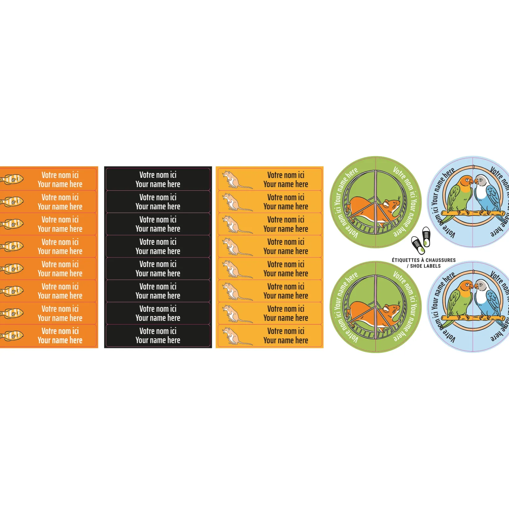 The Classic Edition is perfect for getting started with identification. It offers a range of convenient sizes for labeling everyday essentials, both at home and on the go. It contains 80 self-adhesive labels in various sizes, including 4 pairs for shoes, allowing children to easily identify the correct foot. Resistant to water, cold, heat, and steam, they are dishwasher, washing machine, dryer, microwave, freezer, and refrigerator safe. With no ironing required, simply apply them and wait 24 hours before exposing them to moisture or heat. Each label is personalized with a name and/or phone number printed on two lines of 16 characters.